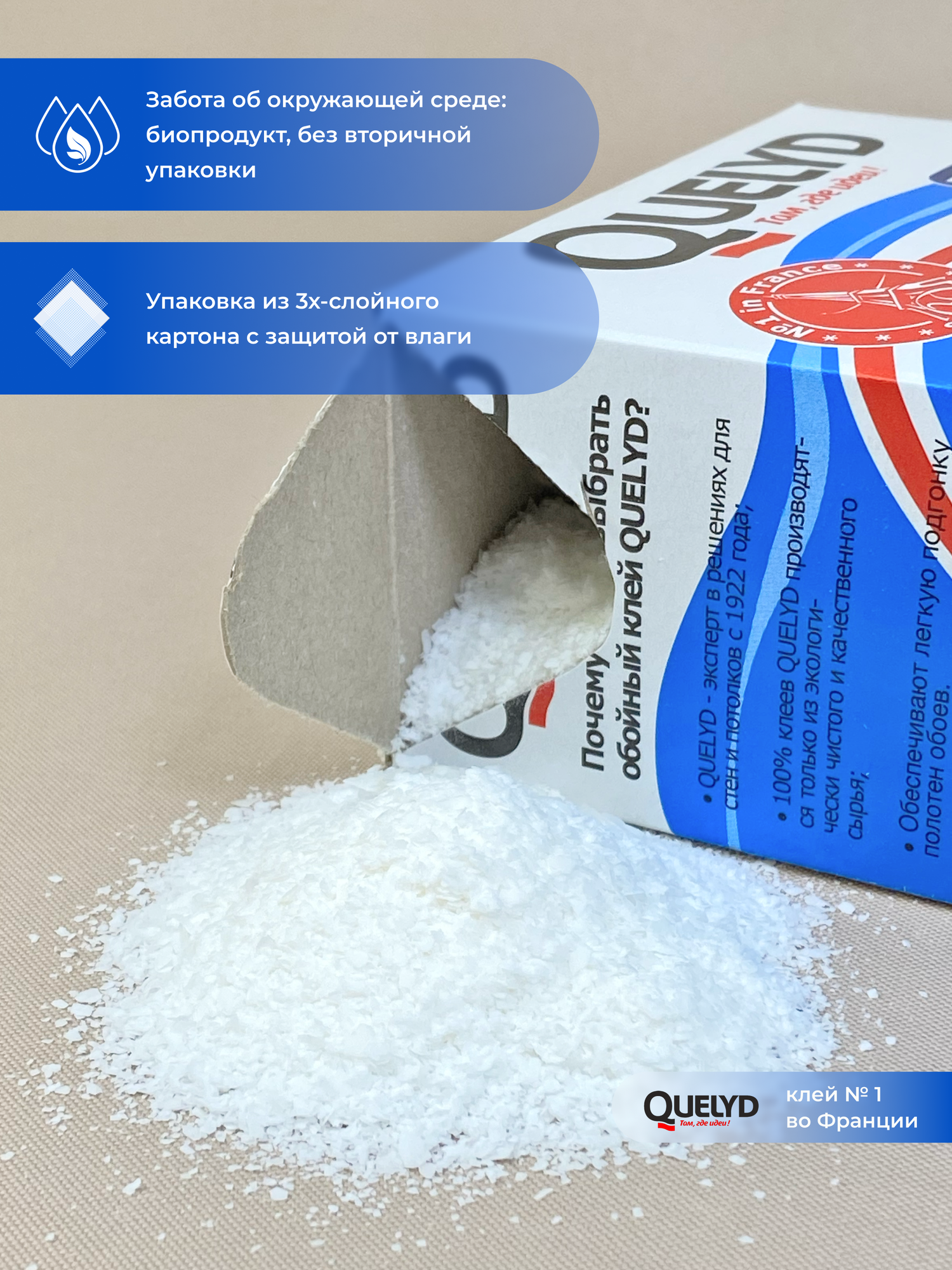 **Клей Quelyd Спец-флизелин** предназначен для всех видов обоев: флизелиновых и под покраску. Не требует обработки полотен: состав наносят непосредственно на стену. На упаковке размещены полезные советы по поклейке обоев, что поможет добиться идеального результата. После завершения работ тара под состав и инструменты легко промываются под струей чистой воды.