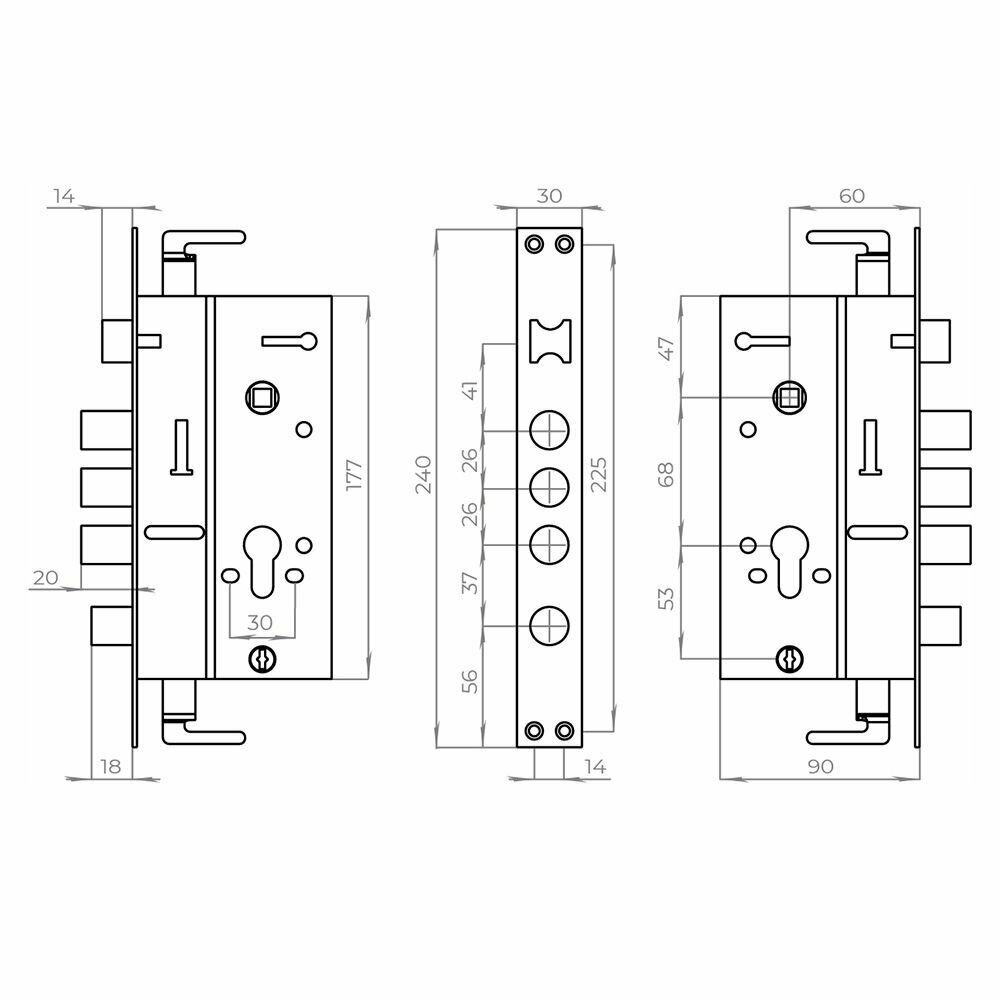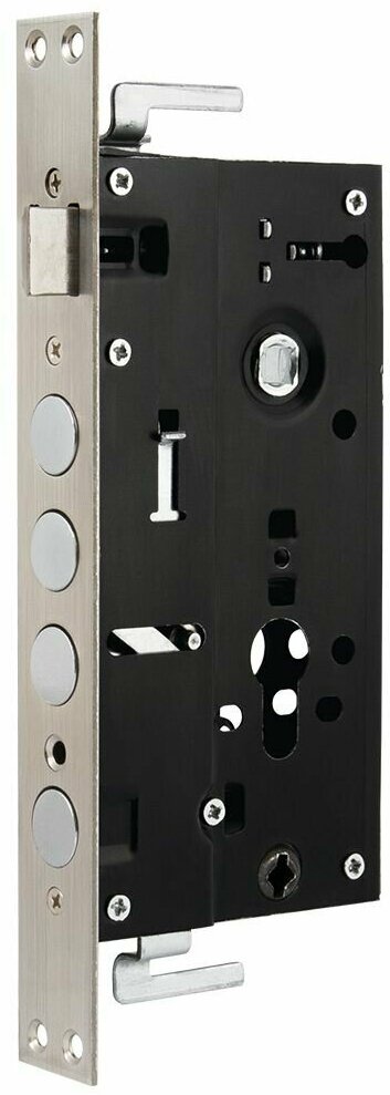 **Корпус врезного замка Ajax ** идеально подходит как для деревянных, так и для металлических дверей. В нем предусмотрены все необходимые отверстия для монтажа самого механизма. Относится к категории врезных изделий, то есть устанавливается непосредственно в полотно. Отличается универсальностью, так как подходит для дверей, которые открываются слева или справа. Корпус выполнен из стали, что придает ему повышенную прочность и устойчивость к деформации и механическому повреждению.