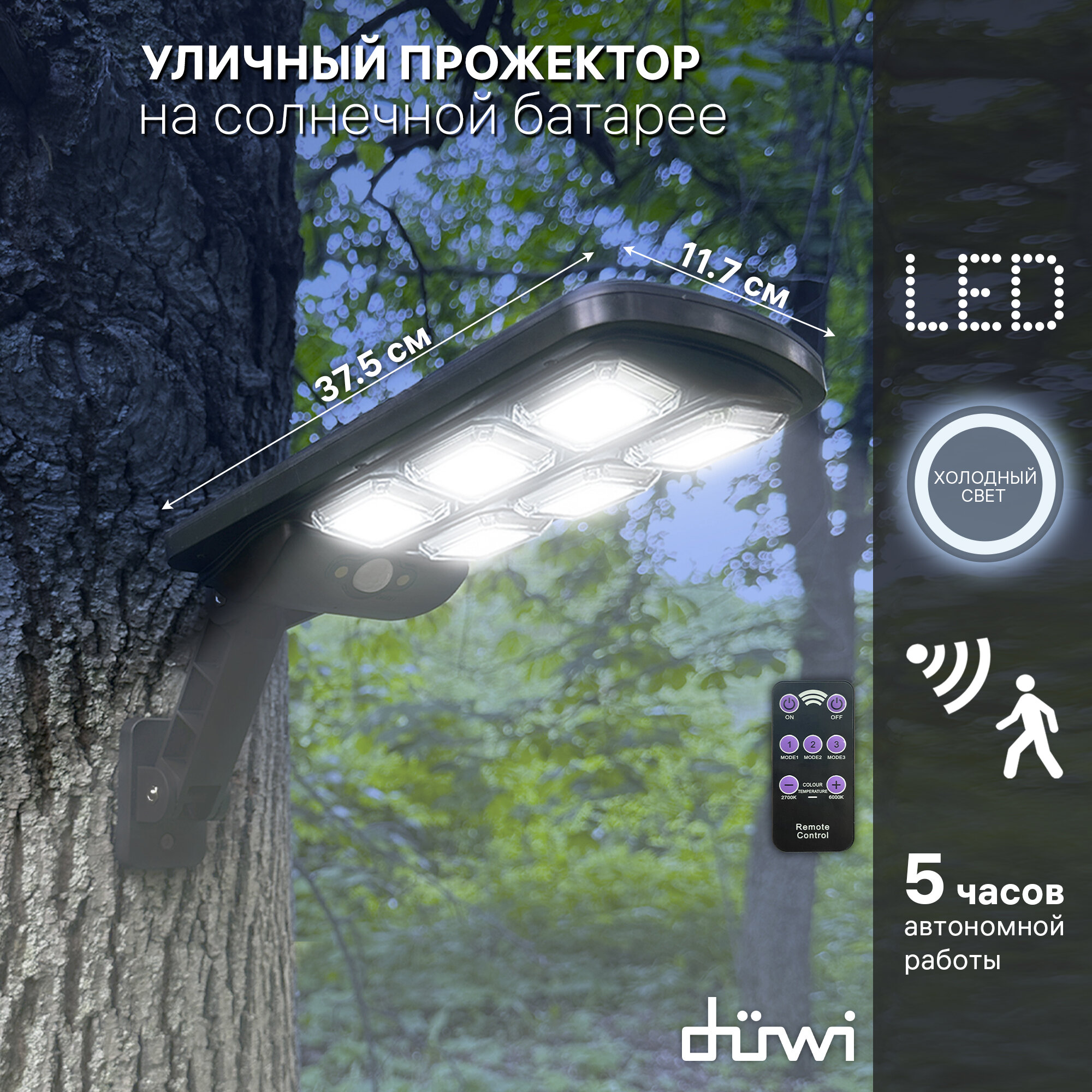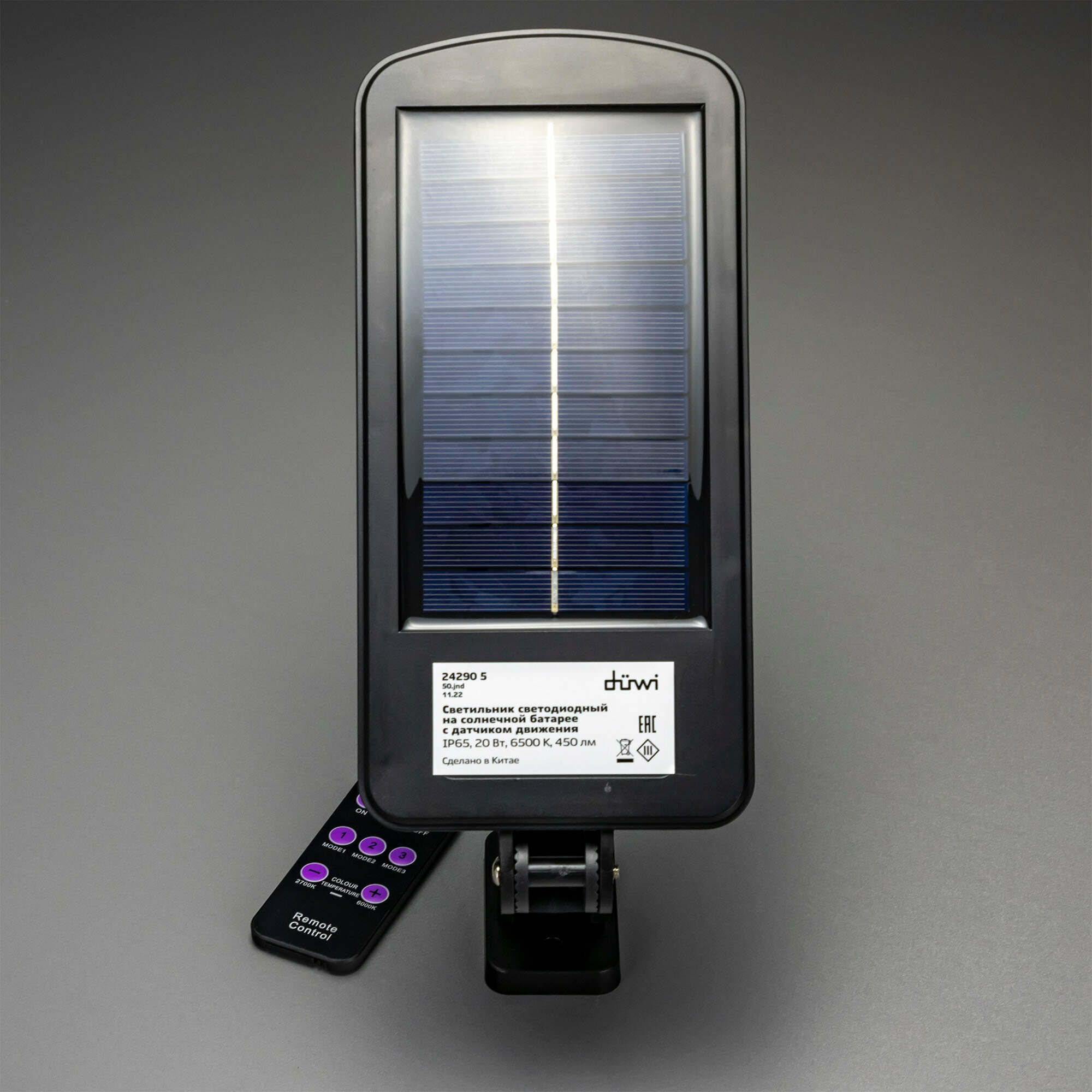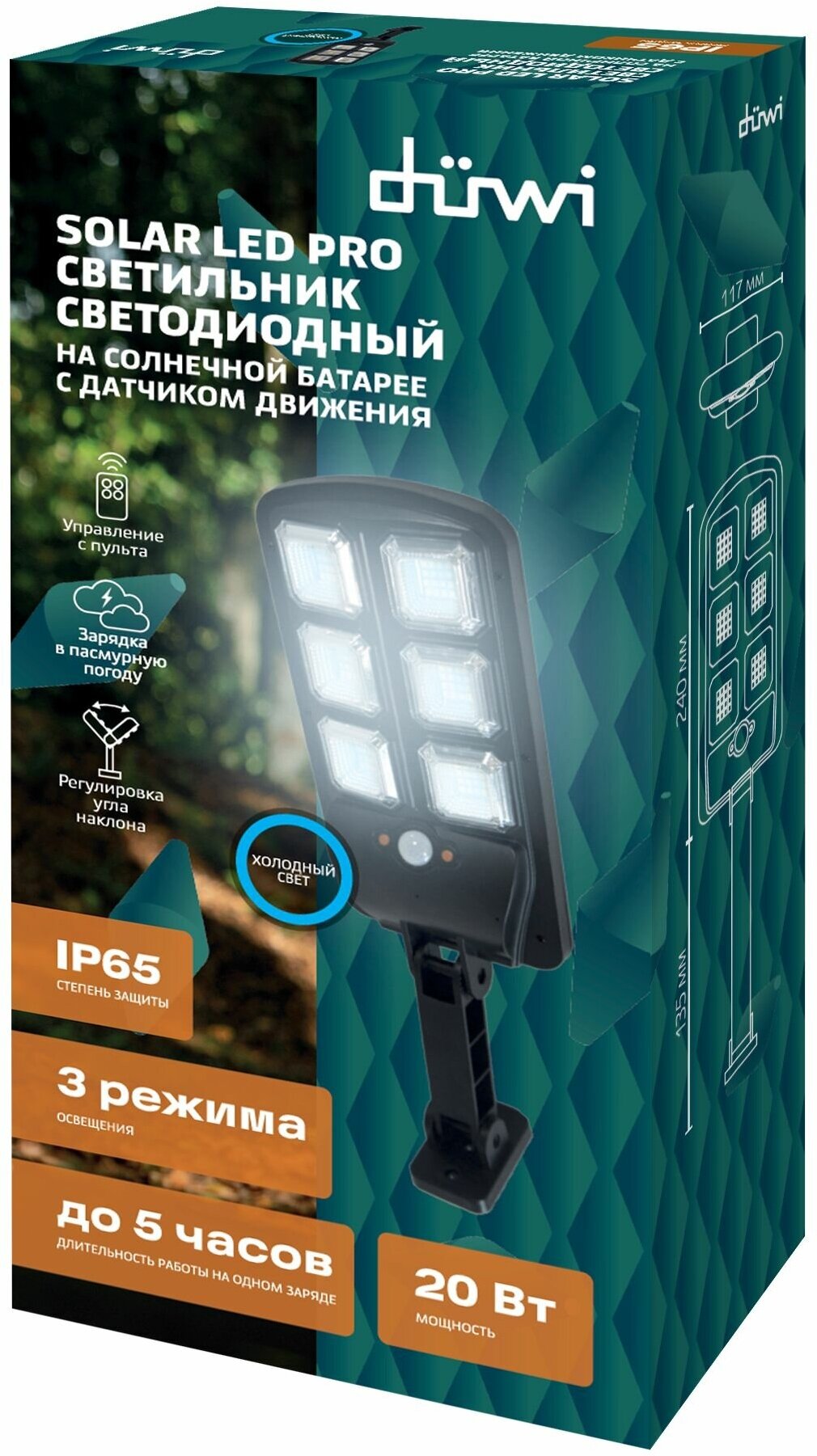 Светильник светодиодный уличный Duwi Solar LED PRO на солнечных батареях с ДУ 20Вт 6500К 450Лм IP65 датчик движения черный Solar LED PRO 24290 5