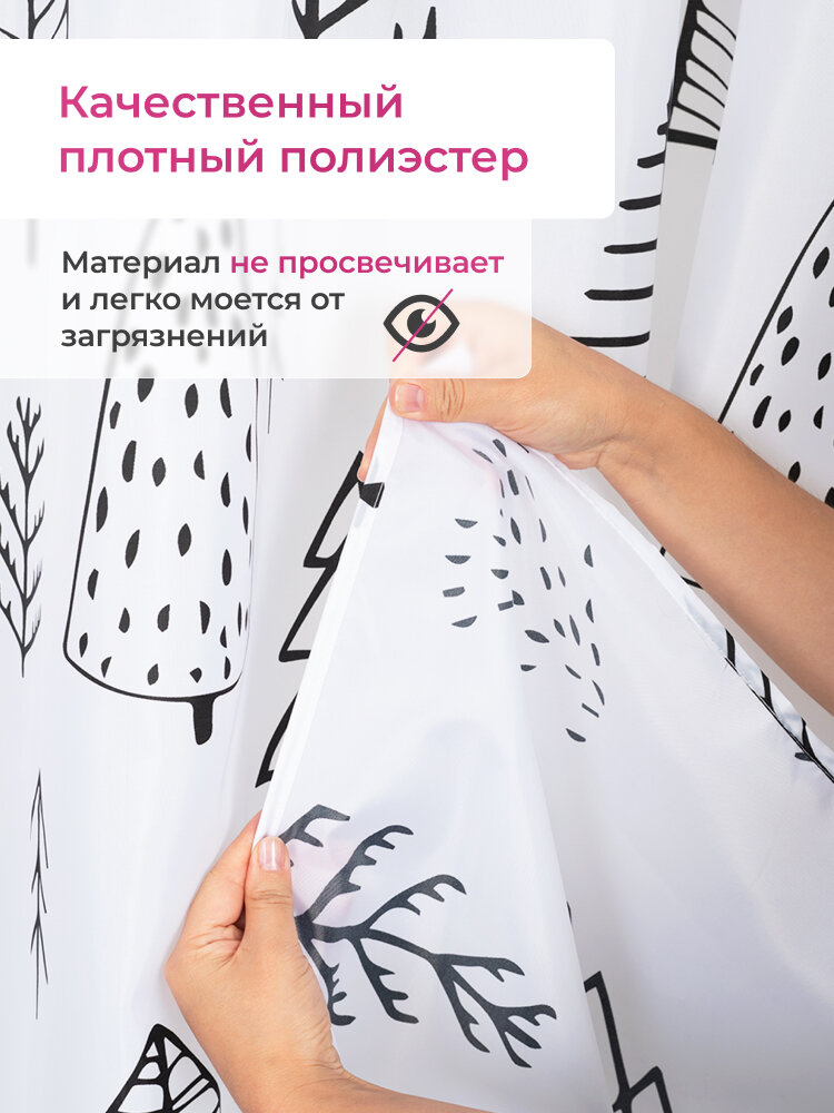 **Штора для ванной Lemer Abstract** изготавливается из полиэстера, покрытого водоотталкивающим составом. Оснащена утяжелительной цепочкой снизу, утяжеляющей всю конструкцию. Кольца идут в комплекте.