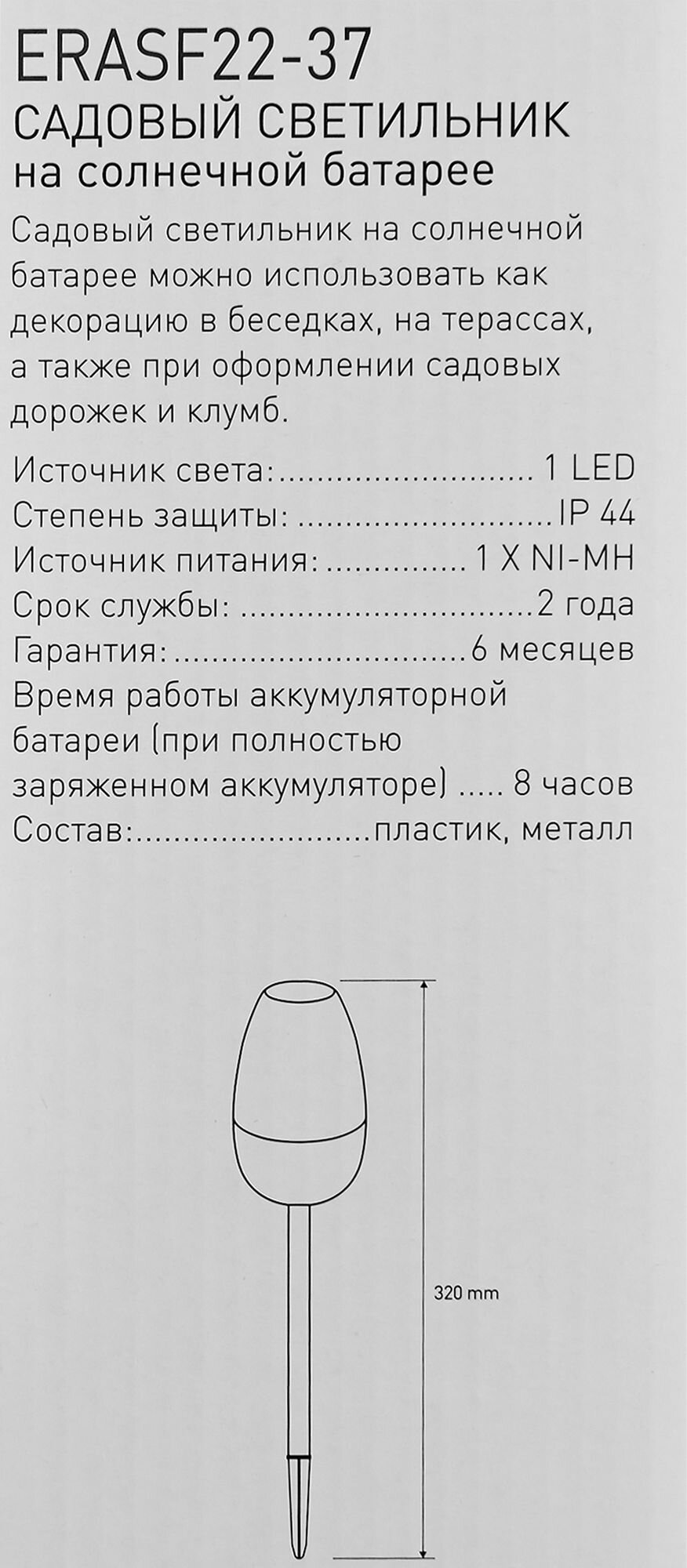 Сервис сравнения цен СкидкаГИД предлагает сравнить цены на товар «Светильник в грунт Эра «Идеал» на солнечных батареях 32 см цвет разноцветный нейтральный белый свет ERASF22-37»