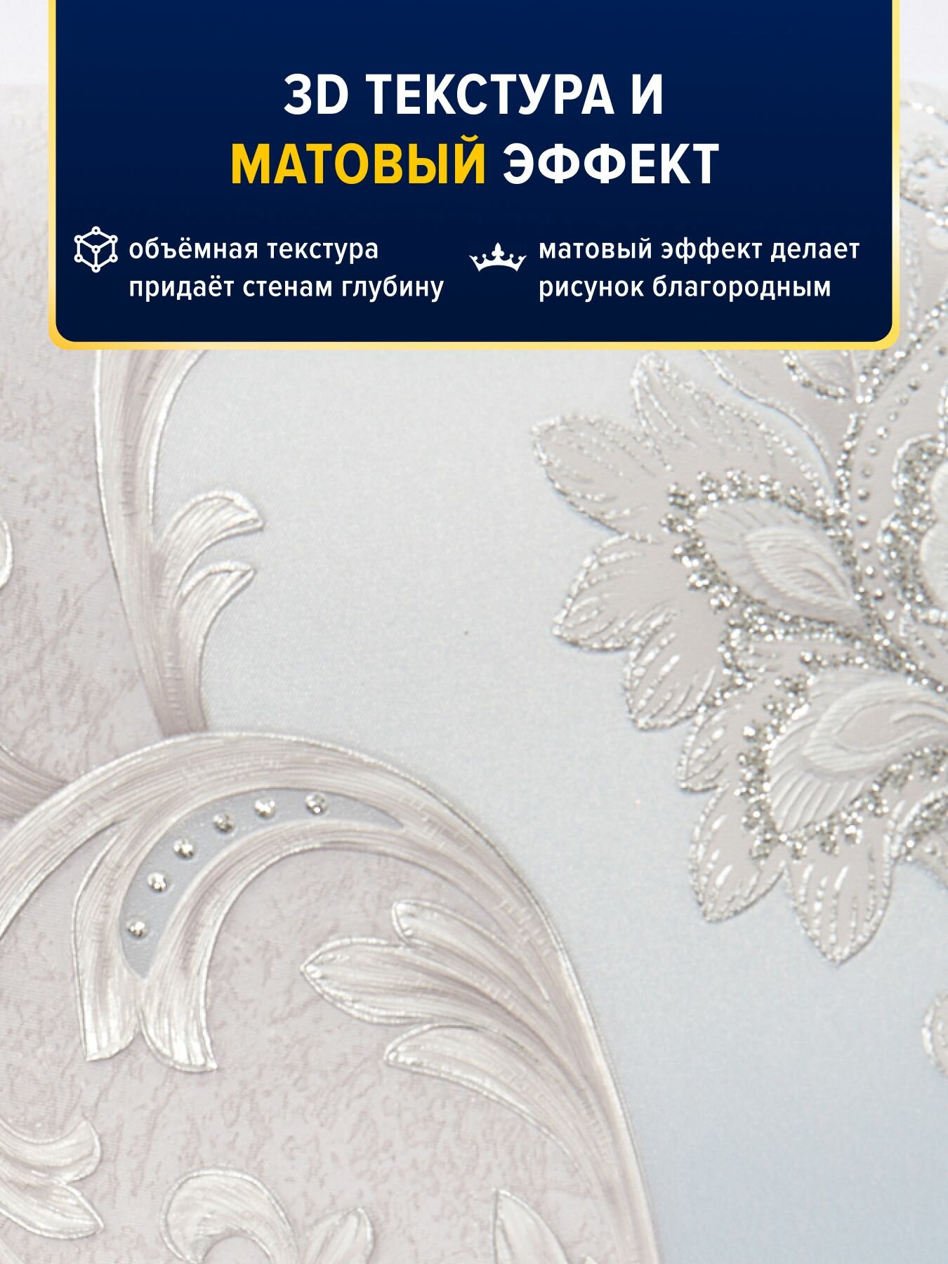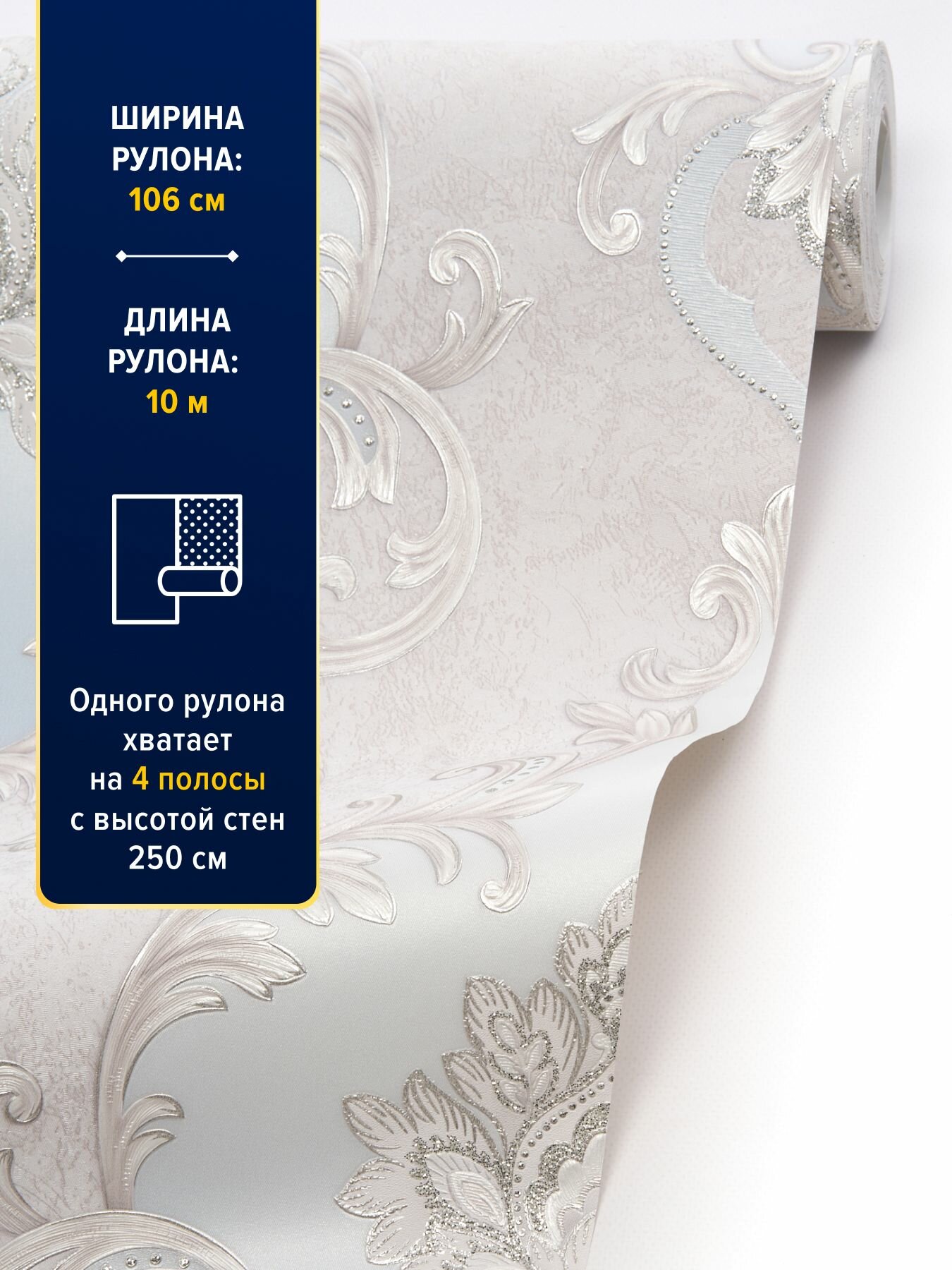 **Обои флизелиновые Московская обойная фабрика Виктория 4250-3** отличаются стильным и эффектным видом. Они легко клеятся, расправляются и хорошо сохраняют первоначальную форму. Даже в случае намокания такие изделия быстро высыхают. Они состоят из двух слоев: верхнего декоративного в виде винила горячего тиснения и подложки из флизелина. Благодаря гладкой поверхности обои не собирают пыль, что значительно упрощает уход за ними.