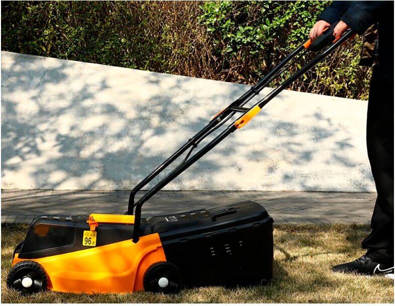 **Газонокосилка аккумуляторная Deko ** подходит для обработки дачной иди придомовой территории, парка, сквера. Оснащена травосборником объемом 25 л, что не требует частого его опустошения и позволяет работать непрерывно. Характеризуется автономностью - не нуждается в подключении к источникам питания. Легкость перемещения обеспечивают большие колеса, не деформирующие газон. Рукоять удобно лежит в ладонях, не скользит и быстро складывается, позволяя компактно хранить устройство.