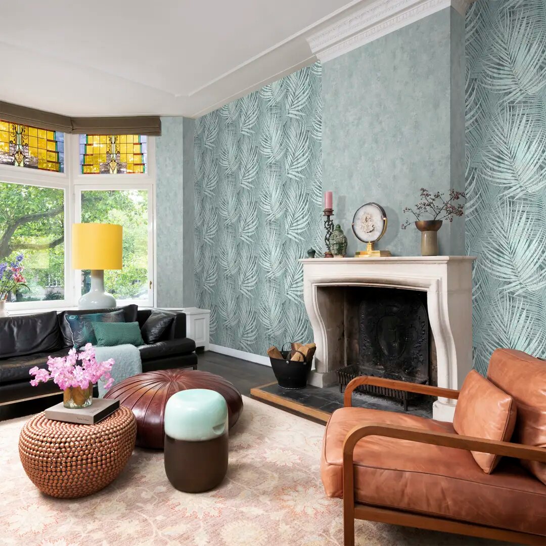 Обои флизелиновые Wall Up Mousson бирюзовые 1.06 м 650853