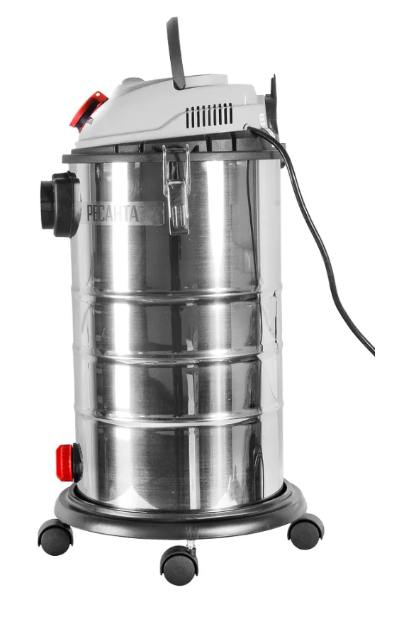 **Пылесос строительный Ресанта ** предназначен для сухой и влажной уборки помещений, совмещения с электроинструментами для принудительного удаления продуктов пиления, сгорания, строгания. Позволяет убирать крупные частицы мусора. За счет длинного шланга и наличия сменных насадок можно удалить мусор из самых труднодоступных мест.