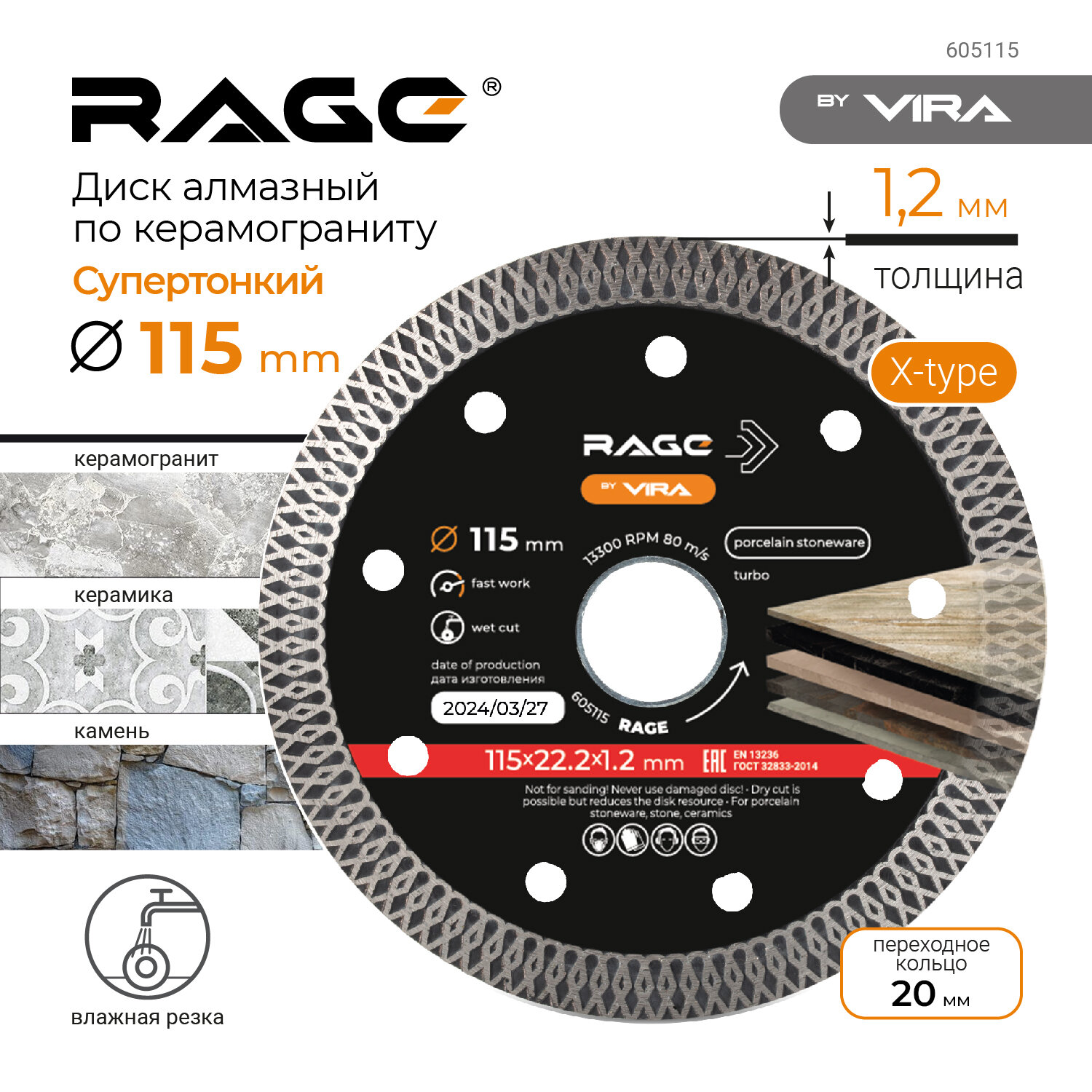 Диск алмазный по керамике Rage турбо x22.2x1.2 мм 115