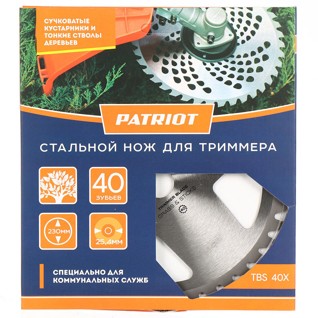 Нож PATRIOT TBS-40 X предназначен для кошения жесткой травы и кустарников.