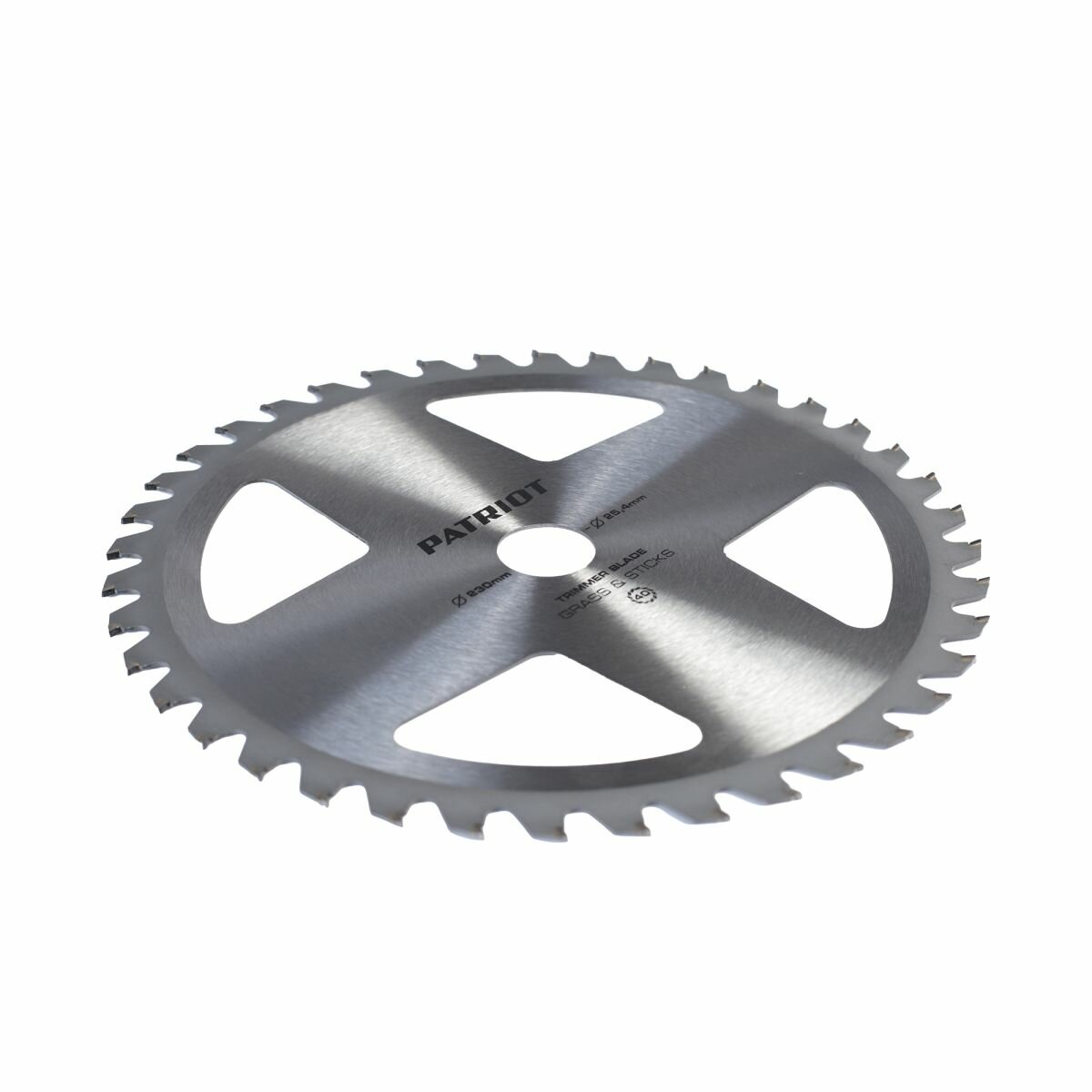 **Нож для триммера Patriot ** предназначен для кошения густой, жесткой травы и кустарников. Твердосплавные зубья долго остаются острыми, а за счёт большого их количества срез получается ровным, а также равномерно распределяется нагрузка на инструмент.