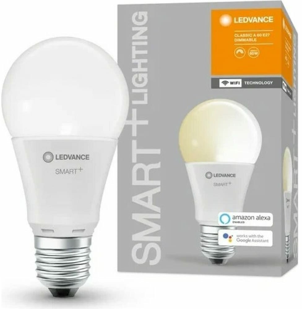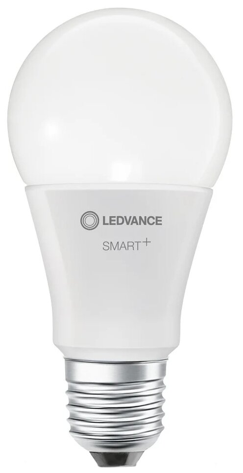 **Лампа умная светодиодная Ledvance Smart Plus** оснащена модулем Wi-Fi. Удаленное управление осуществляется через приложение. Модель излучает как теплый белый свет.