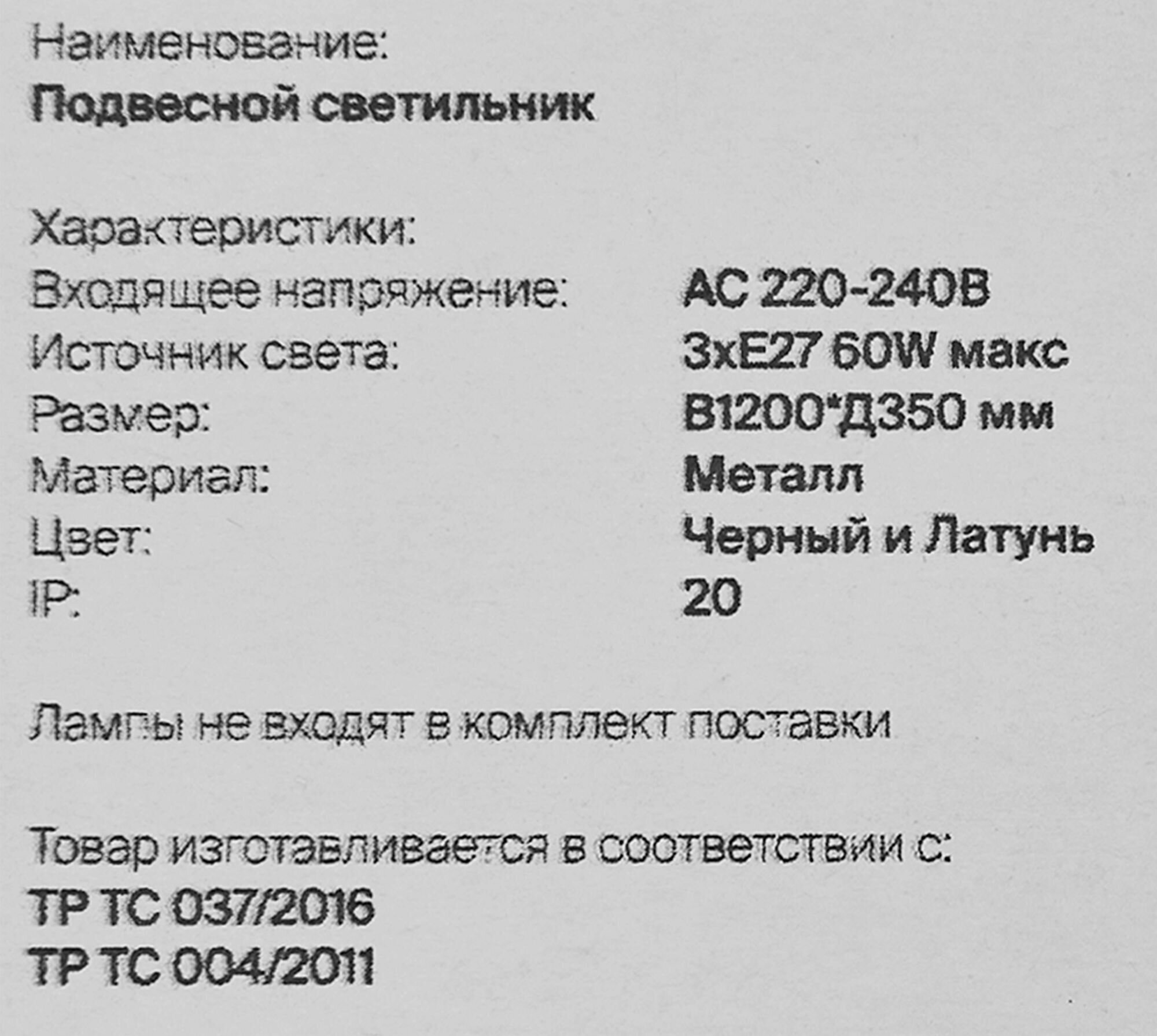 | Количество плафонов или абажуров | 3 |