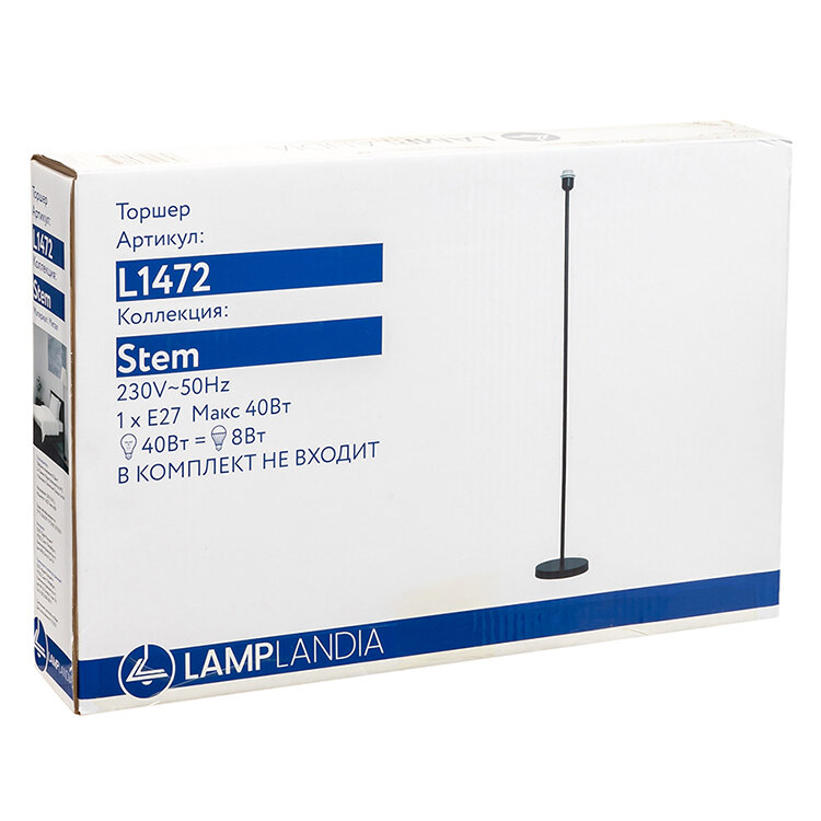 **Торшер Lamplandia Stem L1472** создан для зонированной подсветки в квартирах в разных стилях. Выполнен из металла, окрашенного в черный матовый цвет, что сочетается с любыми оттенками в интерьере. Торшер подходит для размещения в спальне, в детской и в гостиной.