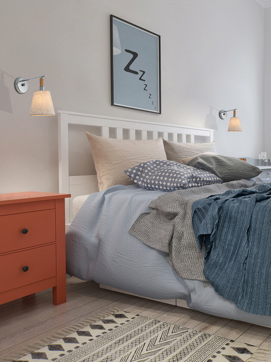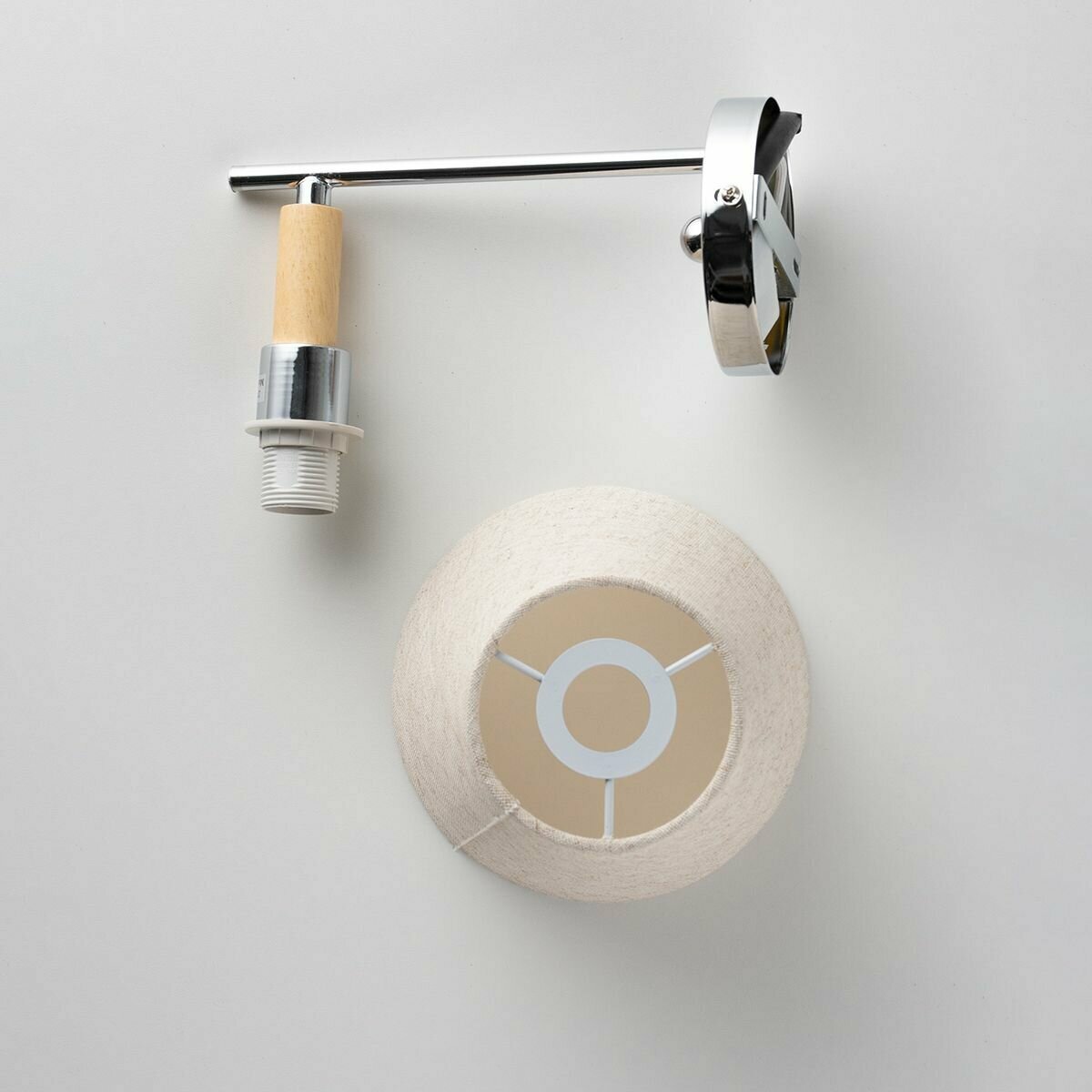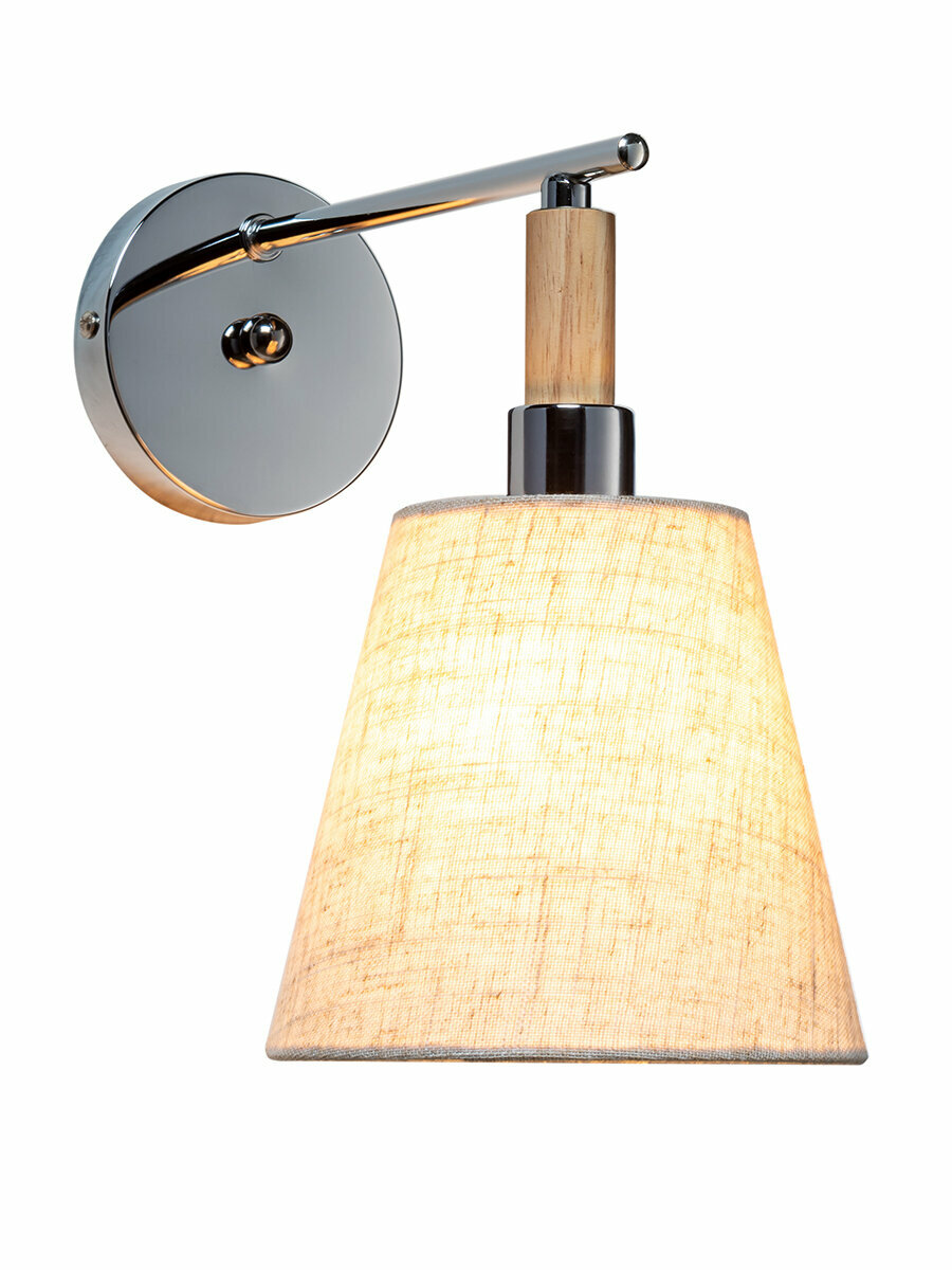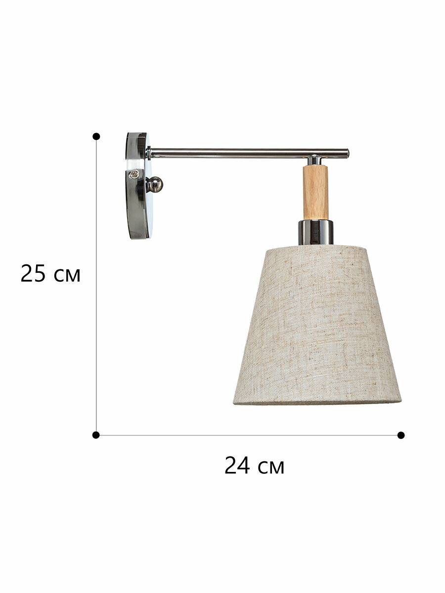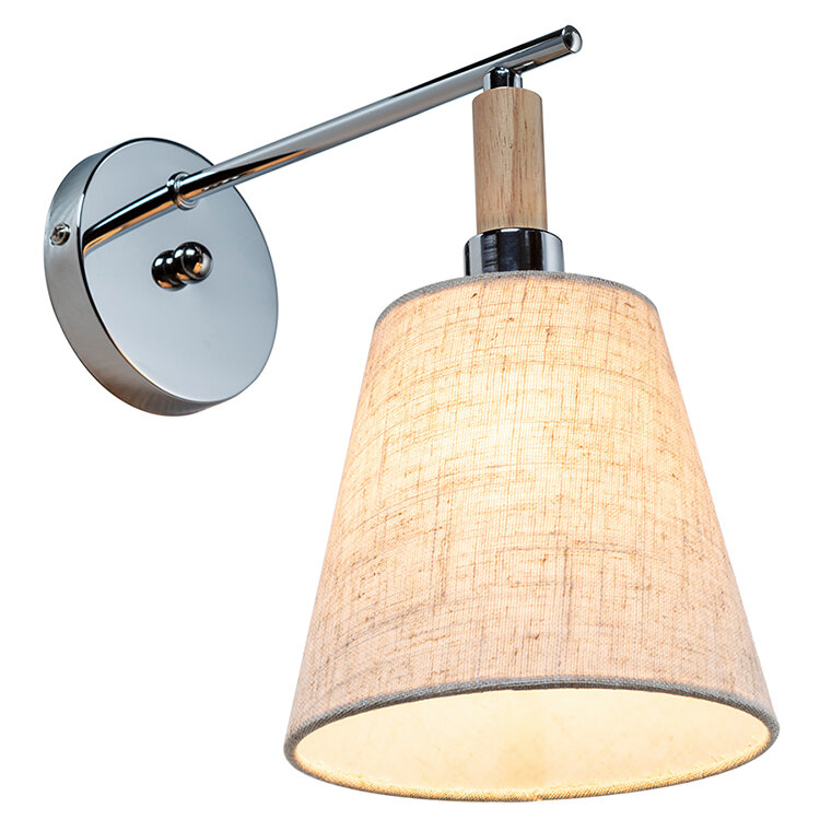 Бра оснащено одним патроном, который рассчитан на использование ламп накаливания с цоколем Е14. Прибор работает от сети. Для управления предусмотрены кнопка включения/выключения и регулятор яркости.