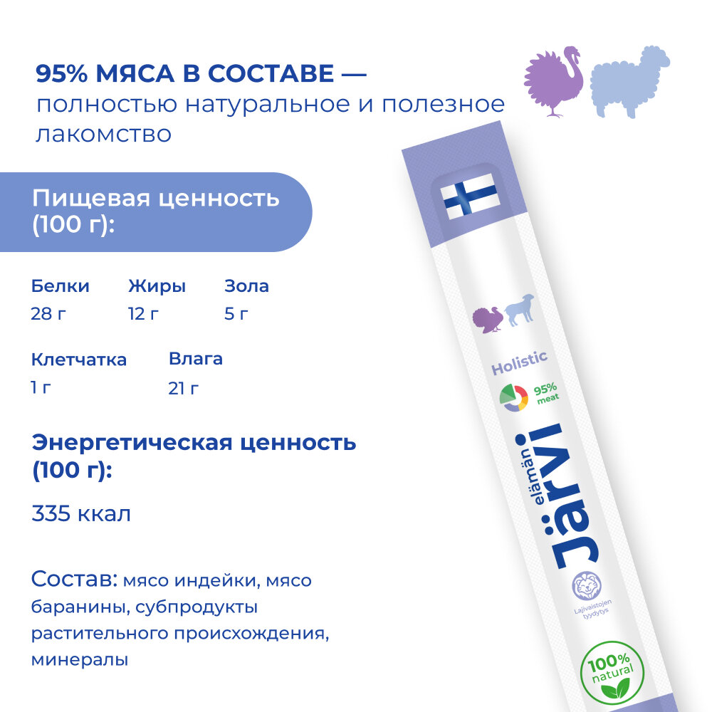 Jarvi - мясные колбаски для кошек и котят, соответствующие высоким стандартам финского качества.95% мяса в составе, а так же набор витаминов - только самое полезное для питомца.Продаётся в индивидуальной упаковке, сохраняя свежесть и полезные качества продукта длительное время.