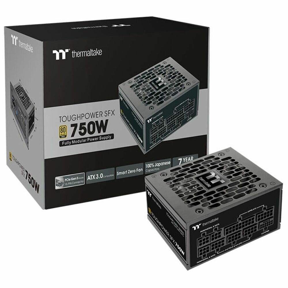 Блок питания Thermaltake Toughpower SFX 750W [PS-STP-0750FNFAGE-1] рассчитан на мощность 750 Вт, что позволяет создавать компьютерные системы для работы, игры или учебы. Модель соответствует сертификации 80+ Gold, обеспечивает высокую энергоэффективность и производительность. Интерфейс PCIe 12+4pin позволяет устанавливать графические карты следующего поколения. Блок питания Thermaltake Toughpower SFX 750W [PS-STP-0750FNFAGE-1] имеет специальную пластину, которая подходит к креплению в корпуса с форм-фактором SFX. Активный вентилятор размером 92 мм обеспечивает бесшумное и своевременное охлаждение, создавая комфортные условия для бесперебойной работы системы. Модульное устройство имеет плоские кабели оптимальной длины, что позволяет подключать только необходимое оборудование и убирать лишнее. Японские конденсаторы устойчивы к повышенной температуре и препятствуют протечке электролита.