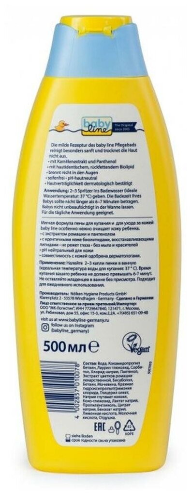 Беби Лайн пенка для купания детская с ромашкой и пантенолом 500мл Nolken Hygiene produkts GMBH (119189)