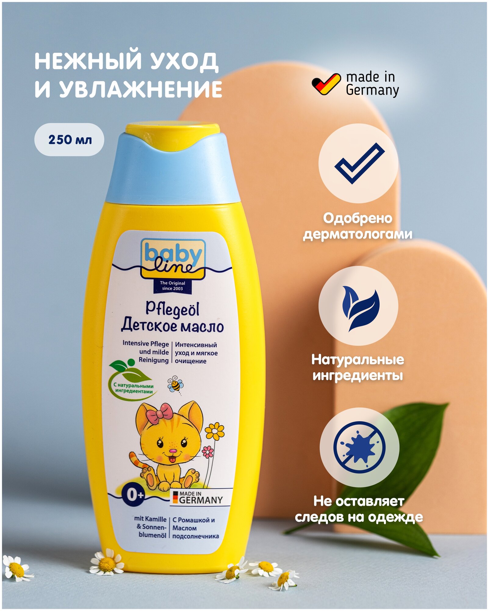 Беби Лайн масло детское для ухода и массажа с ромашкой и подсолнечником 250мл Nolken Hygiene produkts GMBH (123097)