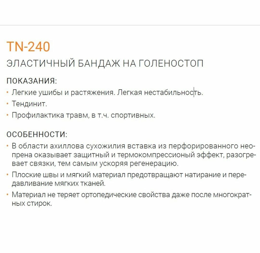 TN-240 бандаж Действие: Легкая фиксация голеностопного сустава. Основные преимущества: В области голеностопного сустава вставка из перфорированного неопрена оказывает защитный и термо-компрессионый эффект, разогревает связки, тем самым ускоряя регенерацию. Материал не теряет ортопедические свойства даже после многократных стирок. Показания: Легкие ушибы и растяжения. Тендинит. Легкая нестабильность. Профилактика травм, в т. ч. спортивных. Как определить размер Окружность над щиколоткой. Измерьте окружность голени на 2 см выше щиколотки. Нога расслаблена. Измерительная лентадолжна плотно (но без натяжения) прилегать к телу. Зарегистрированное медицинское изделие Европейское качество от производителя с 70-летней историей Поставка от официального представителя и эксклюзивного экспортера бренда в России - METIZ