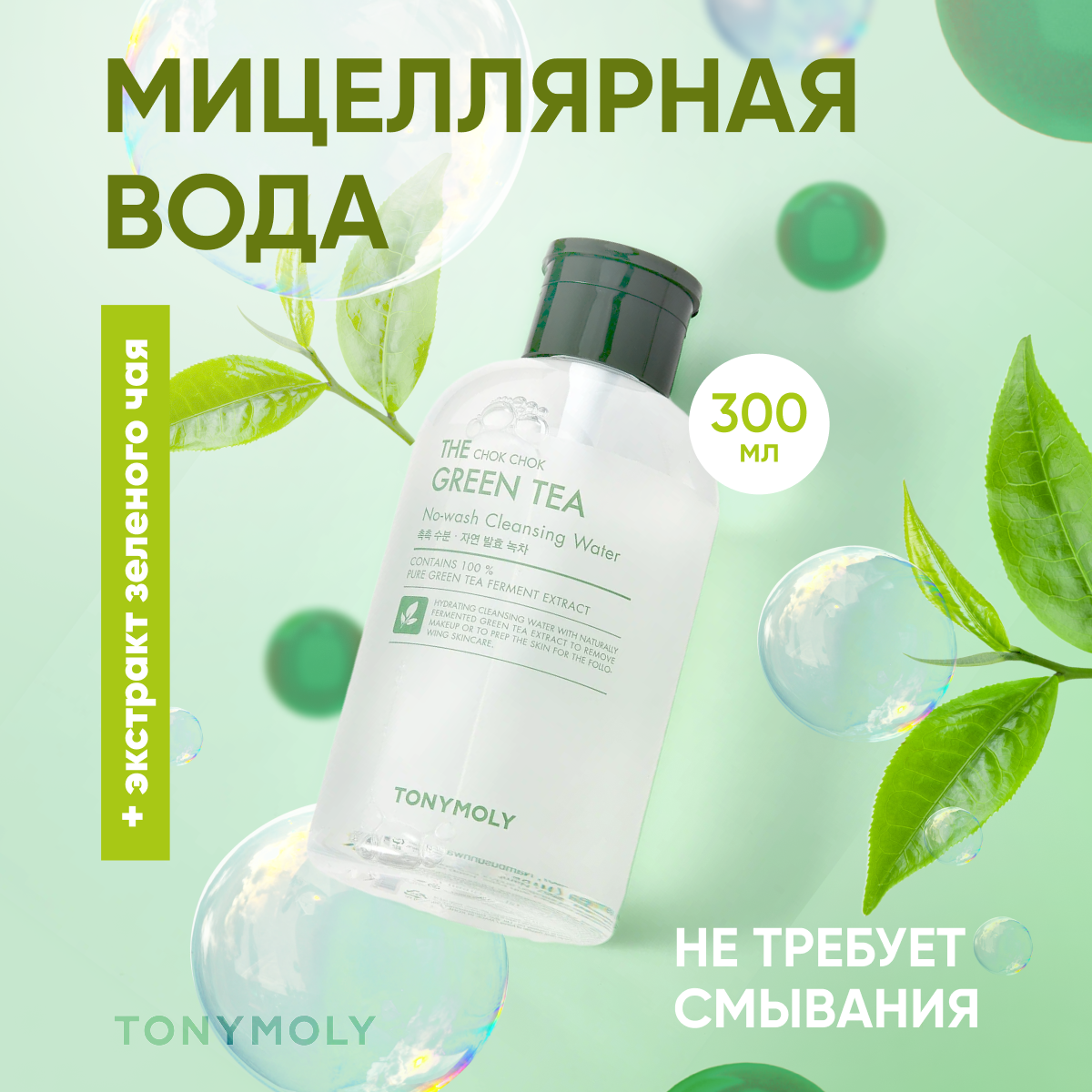 Мицеллярная вода для снятия макияжа с экстр The chok chok green tea no-wash cleansing water TONYMOLY 700мл Cosmecca Korea Co. Ltd (2134694)