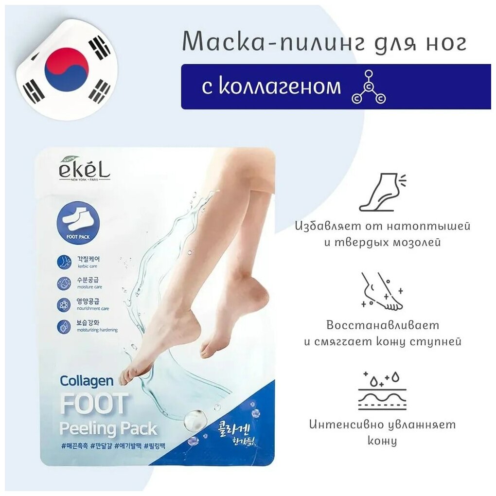 Пилинг-носочки с коллагеном Collagen foot peeling pack Ekel/Екель 40г EZEKIEL COSMETIC Co.,Ltd (2140172)