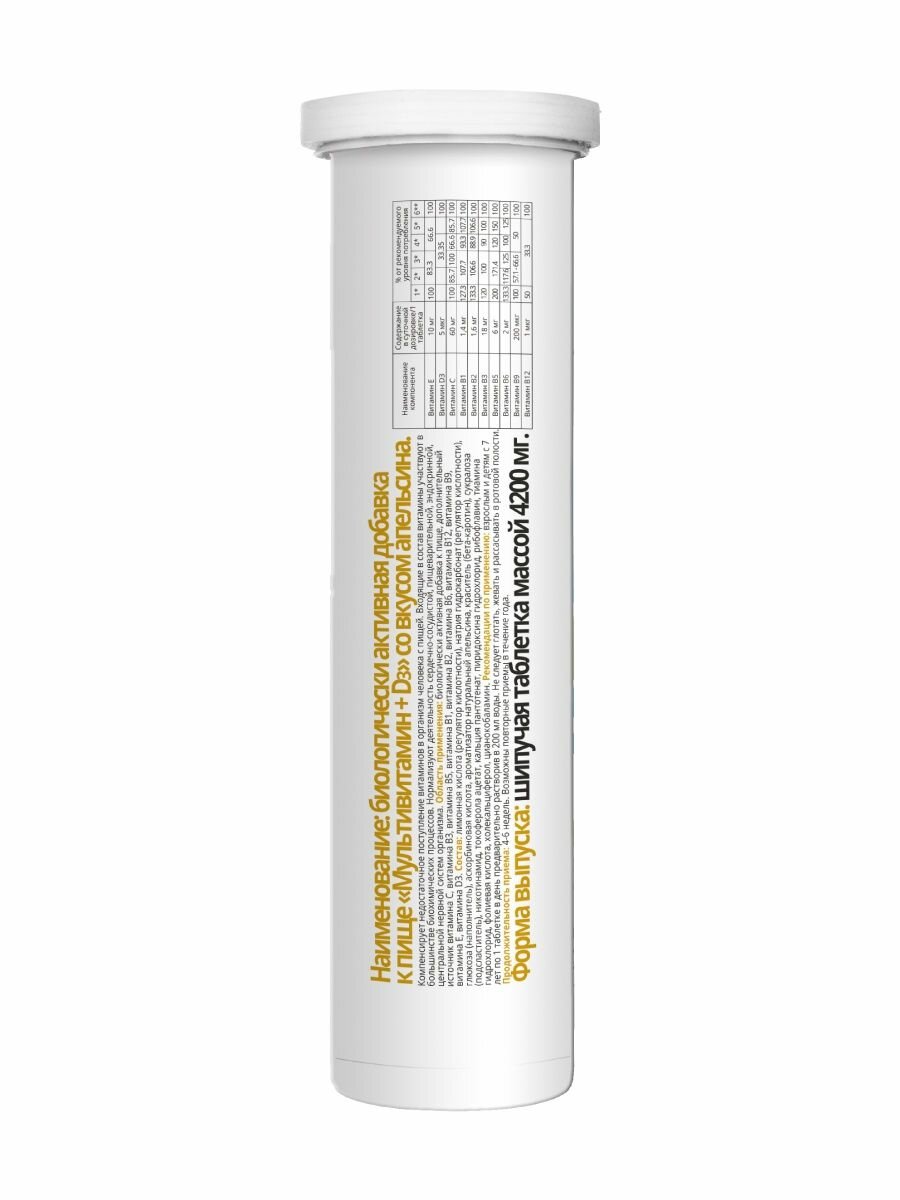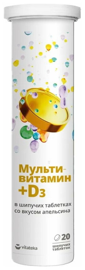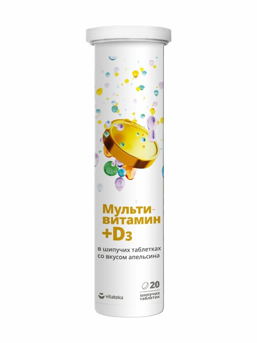Мультивитамин+Д3 апельсиновые Vitateka/Витатека таблетки шипучие 20шт Мирролла ООО (492361)