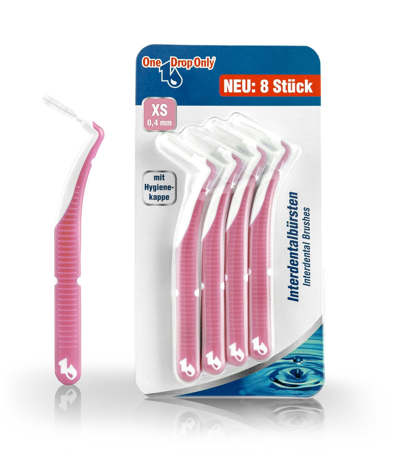 Ершики One Drop Only Interdental Brushes эффективно удаляют налет и остатки пищи в межзубных промежутках, идеально подходят для очищения под мостовидными протезами, вокруг имплантов, ортодонтических конструкций и брекет-систем.• Размер М, диаметр ершика 0.6 мм, цвет синий;• Цветовая кодировка упрощает выбор нужного размера;• Ершики снабжены индивидуальным защитным колпачком для защиты от грязи и пыли;• Изогнутая форма облегчает доступ к труднодоступным местам;• Выгодная упаковка - 8 шт;• Изготовлено в ГерманииПрименяется как дополнительное средство индивидуальной гигиены полости рта к основной зубной щетки.Применение: Для удаления остатков пищи и зубного налета, аккуратно введите в межзубной промежуток, при необходимости согните ершик для легкости использования. Никогда не применяйте силу! Угловая ручка обеспечивает тщательную чистку в местах не доступных для обычной зубной щетки. Промывайте ершик водой после каждого использования, наденьте колпачок. Рекомендуемая продолжительность использования - 1 неделя.