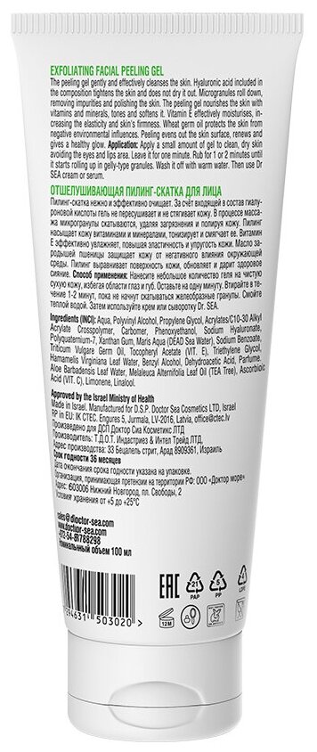 Пилинг-скатка для лица отшелушивающая Dr.Sea/ДокторСи 100мл T.D.O.T. Industries&Intl. Trade LTD (1288498)