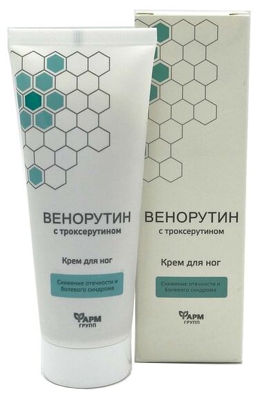 Варикозное расширение вен – это патологическое заболевание, которое развивается в течение долгого периода времени. Поражение вен наступает постепенно. Сначала оно проявляется синдромом тяжелых ног, сосудистым рисунком на коже, болевыми ощущениями и кожным зудом в области голеностопа, а также возникающими к вечеру и проходящими к утру отеками. Большинство людей даже не связывают все вышеперечисленные симптомы воедино. А в это время варикозная болезнь нижних конечностей прогрессирует. И лишь когда пораженные деформированные вены ног становятся заметными через кожу, приходит понимание того, что организм давал тревожные сигналы, которые не были вовремя распознаны.Варикозное расширение вен болезненная и дискомфортная проблема. Может ли крем дать положительный результат и облегчить симптомы варикоза? Конечно, да, только необходимо использовать наиболее эффективный крем Венорутин с троксерутином 2% от компании Фармгрупп.Варикозное расширение вен проблема, требующая внимания. При регулярном использовании крема:Уменьшается отечность ног;Исчезает ощущения тяжести;Стенки кровеносных сосудов становятся более крепкими;Нормализуется циркуляция крови;Действующие вещества в креме:Троксерутин 2% – укрепляет сосудистые стенки, снимает воспаление и препятствует формированию тромбов в кровеносных сосудах, устраняет боли в ногах.Д-Пантенол – способствует улучшению регенерационных способностей тканей и используется для наружного применения.Экстракт плодов и цветков каштана конского – поддерживают в тонусе стенки сосудов, в несколько раз ускоряет движение лимфы, нормализует циркуляцию крови, предотвращает образование микротромбов.Экстракт календулы – снимает воспаления, содействует восстановлению тканей.Эфирное масло пихты сибирской –тонизирует.Преимущества препарата:Более 90% натуральных компонентов.Обогащен витамином C – мощным антиоксидантом, который укрепляет стенки кровеносных сосудов и капилляров.Снижение отечности и болевого синдрома.