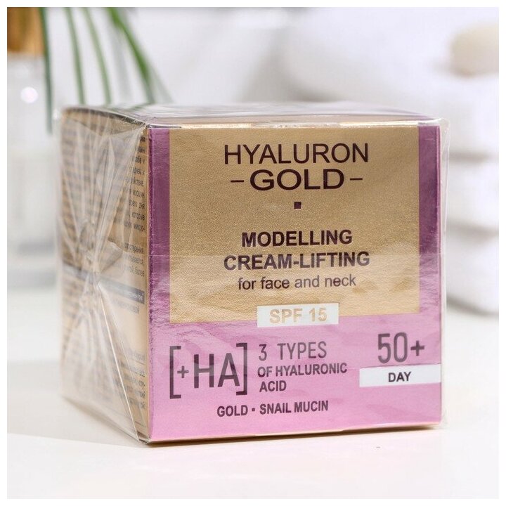 Моделирующий дневной крем-лифтинг создан с учетом особенностей и потребностей кожи в возрасте после 50 лет.Интеллектуальная богатая формула, основанная на 3 видах гиалуроновой кислоты, включает биозолото, муцин улитки, ультрапитательные масла авокадо и жожоба и работает на трех уровнях эпидермиса (верхнем, среднем и глубинном), оказывая выраженное омолаживающее действие.Эффект разглаживания морщин и подтягивания овала лица возникает мгновенно и сохраняется в течение всего дня благодаря особым моделирующим компонентам, которые образуют на коже невидимую поддерживающую микросеточку-корсет для лица и шеи.Гиалуроновая кислота трех молекулярных размеров проникает во все слои эпидермиса, активизируя глубокий клеточный метаболизм и возрождая ресурс молодости кожи.1. Высокомолекулярная гиалуроновая кислота увлажняет кожу в верхних слоях, подтягивает, выравнивает ее тон, дарит свежий, яркий, сияющий цвет лица.2. Среднемолекулярная гиалуроновая кислота проникает в средние слои кожи, стимулирует выработку собственной гиалуроновой кислоты, повышает упругость, плотность и эластичность кожи.3. Низкомолекулярная гиалуроновая кислота действует в самых глубоких слоях эпидермиса, наполняя кожу влагой и «выталкивая» морщинки изнутри, укрепляя и подтягивая контуры лица, обеспечивает мощный и продолжительный эффект лифтинга.Доказанная эффективность гиалурона*Увеличение синтеза собственной гиалуроновой кислоты +93%Улучшение гладкости кожи +66%Стимуляция синтеза коллагена +21%Биозолото выступает в роли проводника, позволяя активным компонентам быстрее и глубже проникать в кожу, значительно повышая эффективность их воздействия, усиливая процессы омоложения. В комплексе с гиалуроновой кислотой и муцином улитки стимулирует клетки вырабатывать собственный коллаген, эластин и гиалуроновую кислоту, улучшает упругость и плотность кожи, позволяет надолго сохранить молодость кожи и четкие гармоничные пропорции лица.Муцин улитки благотворно влияет на процессы омоложения, активно восстанавливает, осветляет и подтягивает кожу, разглаживает все виды морщин, эффективно замедляет образование новых.Ценнейшие масла авокадо и жожоба дарят коже больше, чем просто питание: они насыщают кожу полиненасыщенными омега 3-6-9 жирными кислотами, незаменимыми липидами и другими компонентами, необходимых коже в период гормональных изменений.УФ-фильтры (SPF 15) защищают кожу от фотостарения.Нежная, шелковистая текстура крема быстро впитывается, оставляет восхитительное ощущение гладкой, упругой, более молодой кожи.Результат: при регулярном применении уменьшаются все виды морщин (мимические, носогубные складки, глубокие морщины и заломы), восстанавливается чёткий овал лица и контуры шеи, кожа выглядит подтянутой, отдохнувшей и ухоженной весь день.Максимальный результат достигается при комплексном применении средств линии. Эффект накапливается и сохраняется надолго.Подходит для кожи любого типа.Рекомендуется использовать с 50 лет.