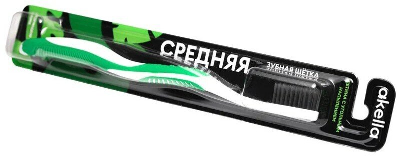 Уникальная зубная щетка для взрослых с щетиной средней жесткости от бренда AKELLA будет радовать вас не только красивым дизайном, но белоснежными зубками! Рекомендована при заболеваниях десен и снижении бактериальной нагрузки на полость рта.Щетинки зубной щётки имеют специальное угольное покрытие и изготовлены по запатентованной технологии на инновационном заводе в Южной Корее. Щетина изготовлена на высокоточном оборудовании и толщина щетинок составляет всего лишь 0,18 мм +/- 0,014 мм - это позволяет максимально глубоко проникать между зубами, прочищая недоступные полости и массирую десны. За счет угольного напыления щётка максимально эффективно отчищает зубной налет и дезинфицирует полость рта, препятствуя размножению (99,9 %) бактерий. Зубные щетки сертифицированы и прошли все клинические испытания. Нашу продукцию рекомендуют родители и стоматологи!