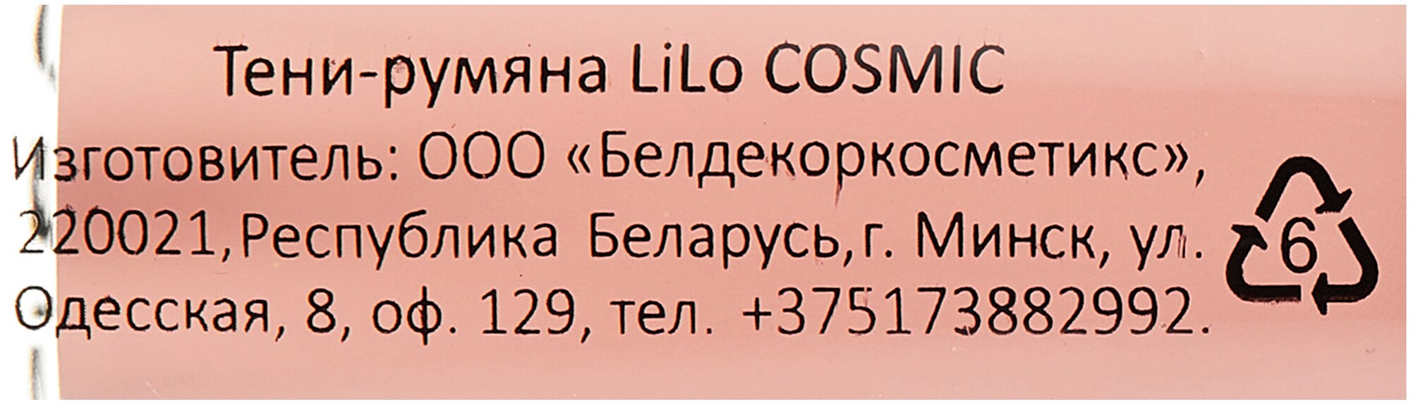 Тени-румяна кремовые Cosmic Blush&Shadow LiLo 31г тон 904 ООО "Белдекоркосметикс" (2326466)