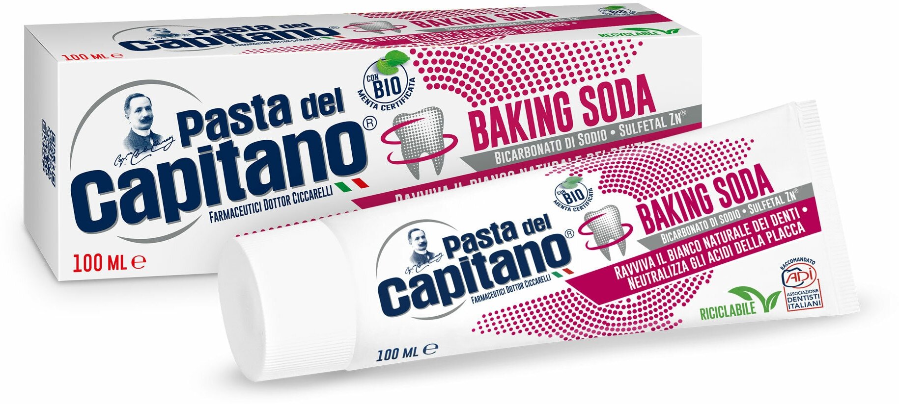 Паста зубная для деликатного отбеливания с содой Pasta del Capitano туба 100мл Farmaceutici Dottor Ciccarelli S.P.A (2369318)