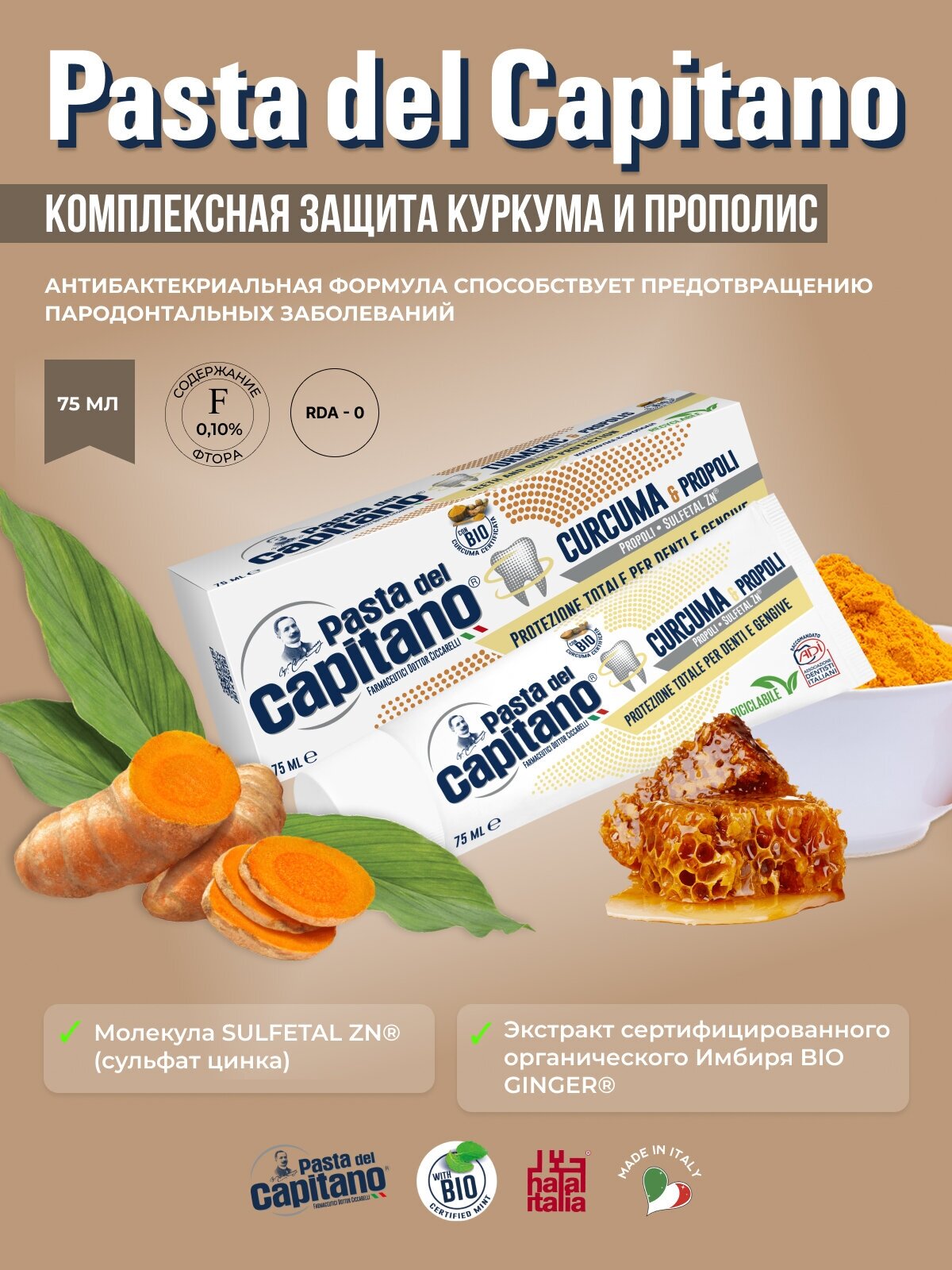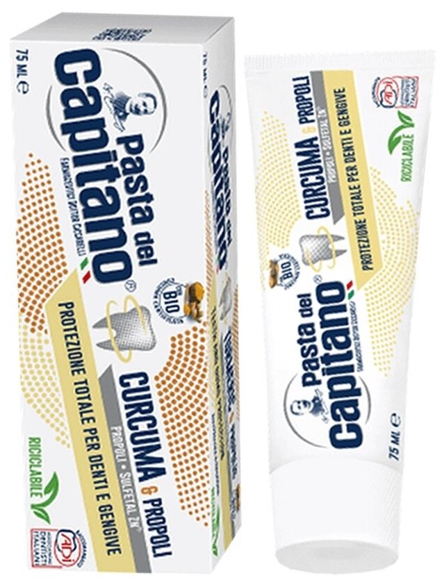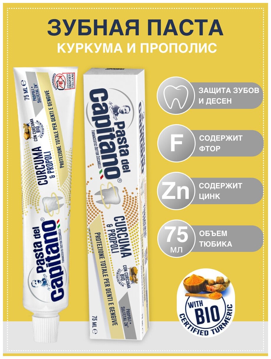 Паста зубная комплексная защита куркума и прополис Pasta del Capitano туба 75мл Farmaceutici Dottor Ciccarelli S.P.A (2369318)