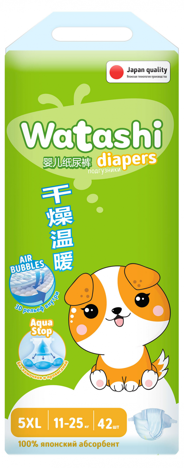 Подгузники одноразовые для детей Jambo-pack КК/2 Watashi 11-25кг 42шт р.XL (5) КОТТОН КЛАБ ООО (575000)