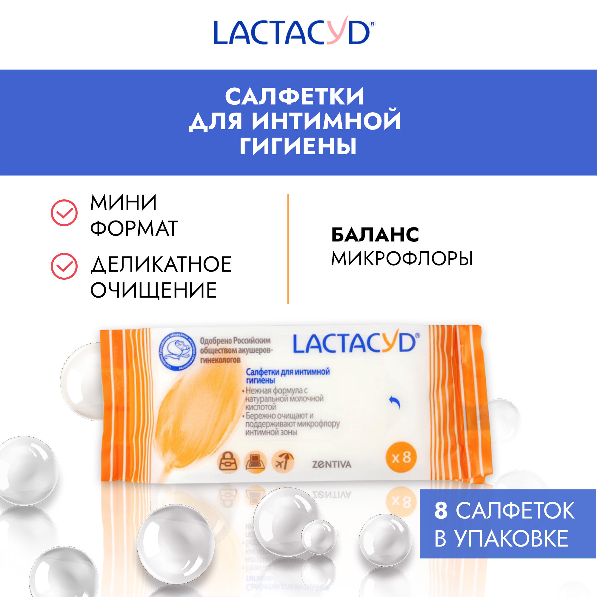 Влажные салфетки LACTACYD, удобны в использовании и отвечают на основные запросы потребителей, аналогичные жидким средствам для интимной гигиены LACTACYD: обеспечивают деликатное очищение и поддерживают женское здоровье. Ещё более удобный, экономичный формат - 8 шт в упаковке!
