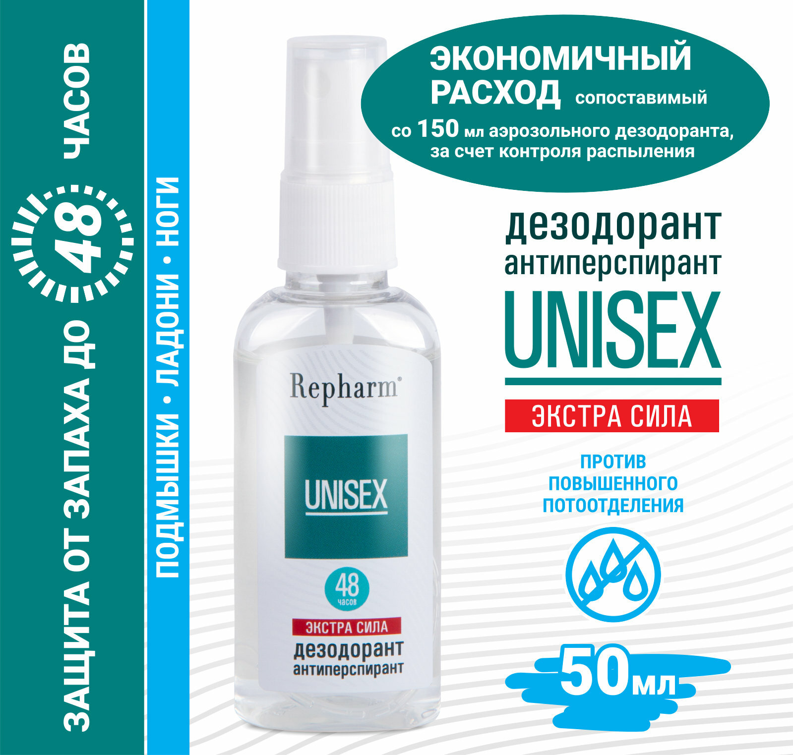 Дезодорант-антиперспирант унисекс Экстра сила Рефарм 50мл ООО "Институт фармацевтических реактивов РЕФАРМ" (1155815)
