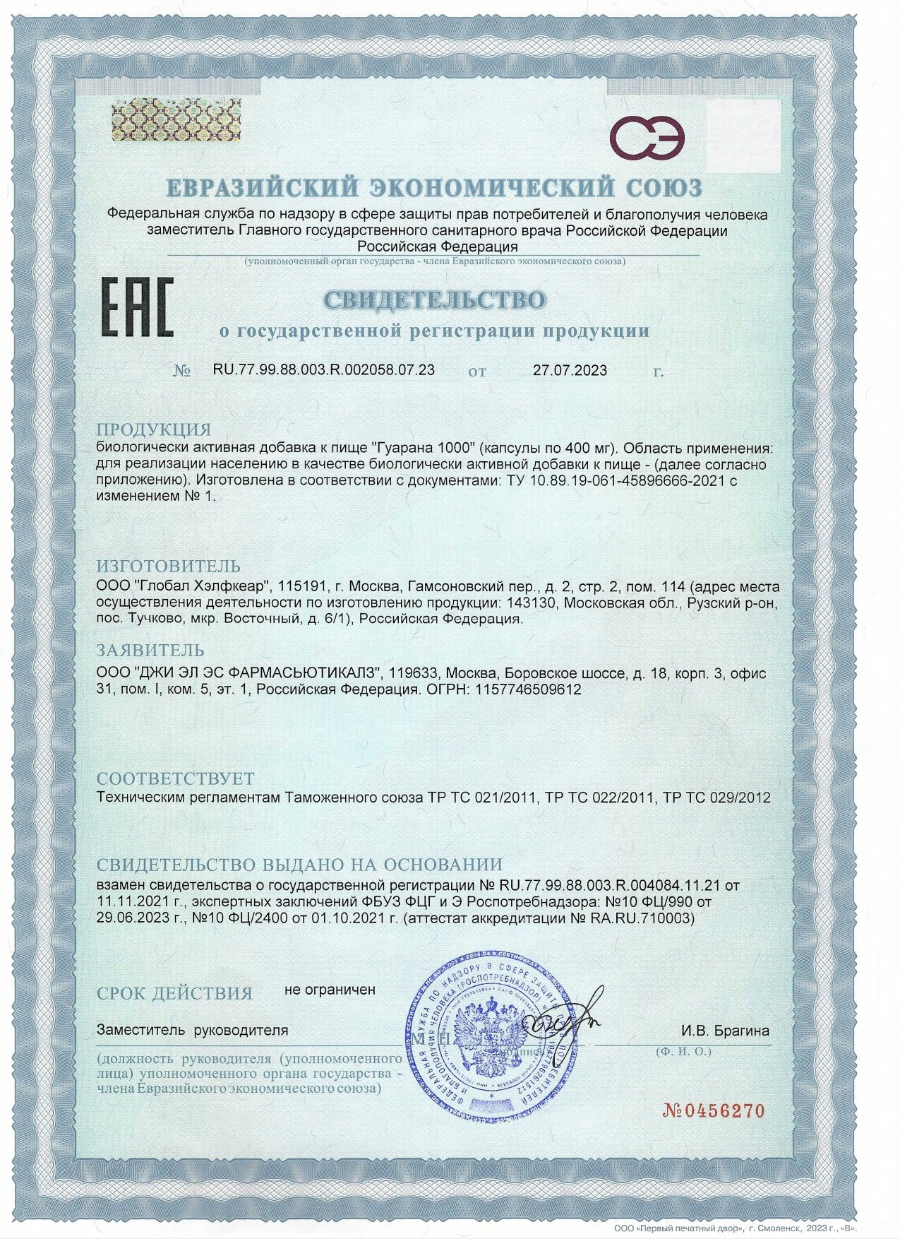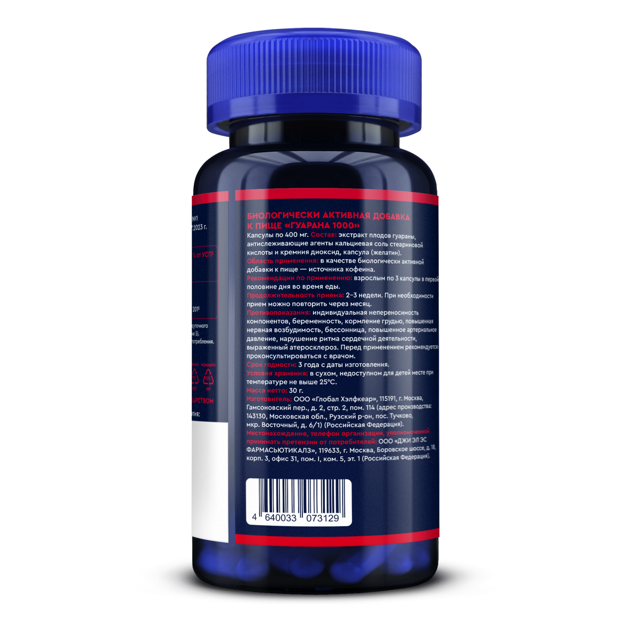 Гуарана 1000 GLS капсулы 400мг 60шт ООО Глобал Хэлфкеар (1473124)