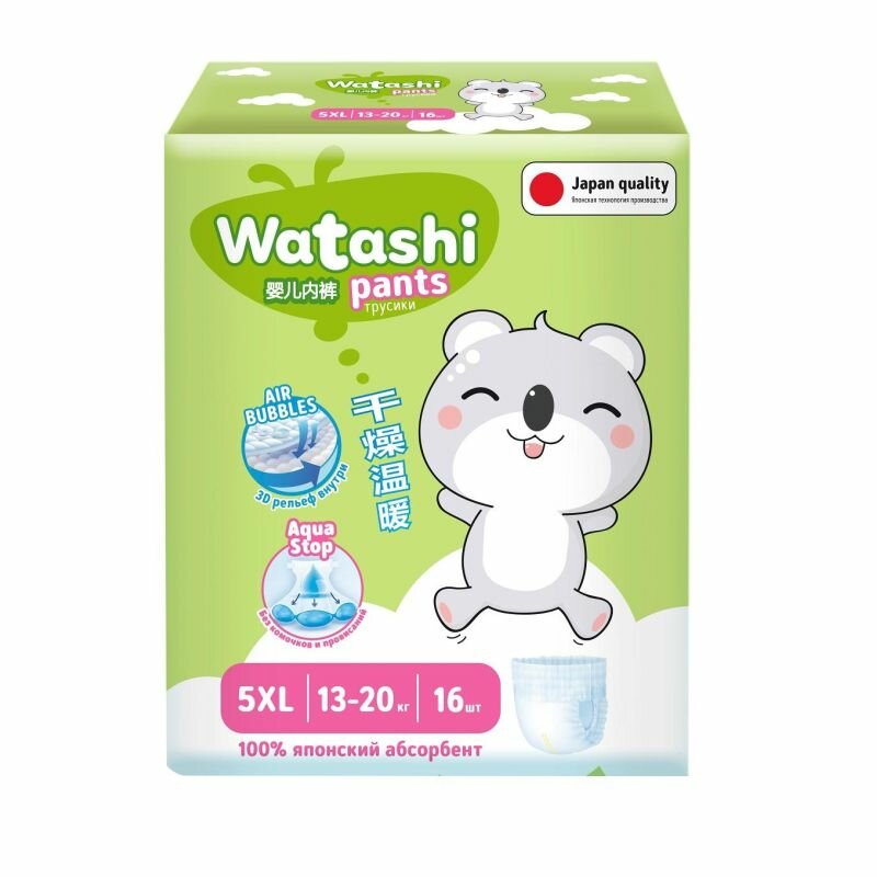 Подгузники-трусики одноразовые для детей Small-pack КК/4 Watashi 13-20кг 16шт р.XL (5) КОТТОН КЛАБ ООО (575000) (размер: 5-XL/5)