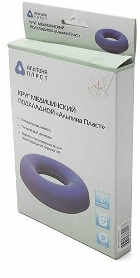 Основные преимущества подкладных кругов "Альпина Пласт": Легко надувается без применения подручных средств. Материал - гипоаллергенный ПВХ, не содержит токсичных и аллергических элементов. Обладает бархатистой поверхностью для избежания опрелостей в местах контакта с кожей. Оптимальные диаметры 39 см. Возможность регулировки жесткости и высоты. Выдерживает нагрузку более 150 кг! Подкладной медицинский круг – это самое доступное, безопасное и эффективное средство профилактики и борьбы с пролежнями и некрозом тканей тела человека. Подкладной круг также используется для восстановления больного после операций на прямой кишке, при ушибе копчика и для ослабления нагрузки на промежности при геморрое. Использование круга Альпина Пласт не вызывает дискомфорт у пациента - круг подкладывается непосредственно под участок кожи, подвергающийся давлению. Степень жесткости подкладного круга легко регулируется, а бархатистая поверхность способствует вентиляции кожи непосредственно в местах соприкосновения. Соответствует требованиям ТУ 9398-018-17707123-2013 Регистрационное удостоверение №РЗН 2015/2669 от 08.07.2016 г. Не подлежит обязательной сертификации и декларированию в РФ. Гарантийный срок годности – 5 лет со дня изготовления.