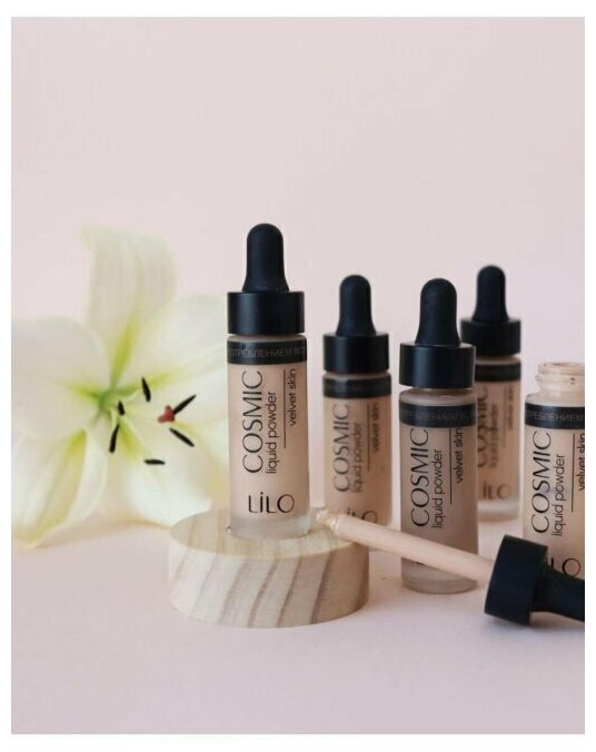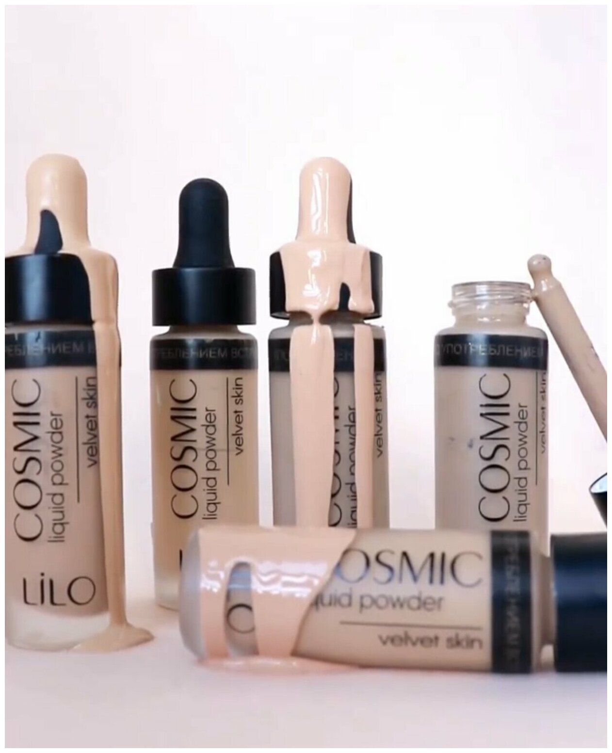 Пудра LiLo Cosmic Liquid Powder - это уникальный продукт, который сочетает в себе стойкость и безупречное покрытие тонального крема и бархатный финиш пудры. Невесомая текстура ложится тонкой вуалью, создавая эффект «второй кожи», выравнивает тон и делает макияж естественным.