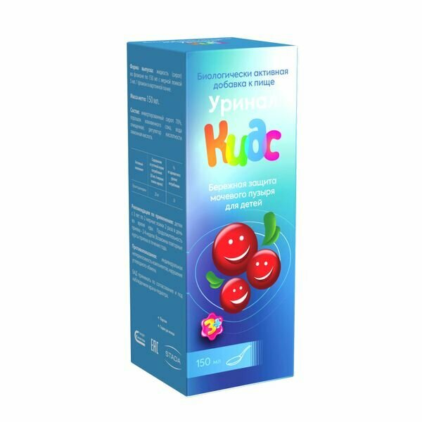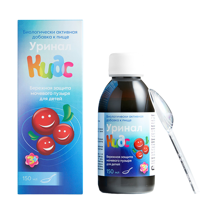 Биологически активная добавка к пище Уринал Кидс (далее - Уринал Кидс) содержит натуральный активный компонент, безопасный для применения у детей и является продуманным по наполнению продуктом европейского качества. Уринал Кидс обеспечивает защиту почек, мочевого пузыря и мочевыводящих путей от вредоносных бактерий и негативных факторов окружающей среды, которые особенно уязвимо влияют на детские органы мочевыделительной системы. Уринал Кидс может служить дополнительным источником проантоцианидинов, может оказывать защитное действие на мочевой пузырь и мочевыводящие пути, улучшать функциональное состояние и поддерживать местный иммунитет почек и мочевыводящих путей у детей. Уринал Кидс подходит как для комбинированного (например, совместно с антибиотиками), так и для самостоятельного применения Эффективность не снижается при длительном приеме, так как у бактерий не формируется устойчивость (резистентность) к действию растительных компонентов. Уринал Кидс имеет высокий профиль безопасности, в связи с чем разрешен к применению у детей. Форма сиропа является одной из предпочтительных для применения в детском возрасте в связи с быстротой всасывания, сироп имеет приятный натуральный вкус. Уринал Кидс не содержит ароматизаторов, красителей, консервантов.
