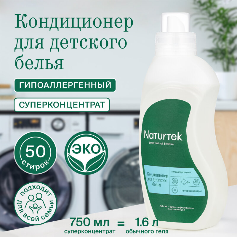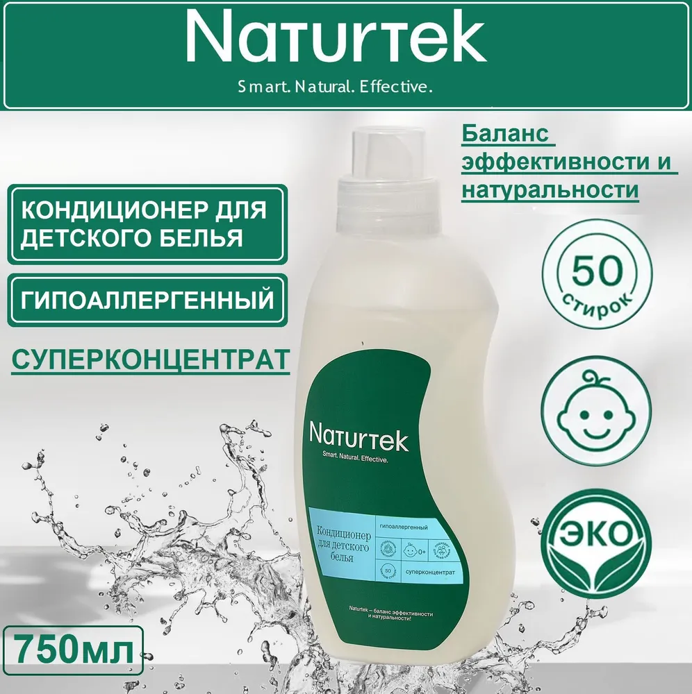 Концентрированный гипоаллергенный кондиционер Naturtek создан для бережного ухода за бельём после основной стирки. Смягчает ткани из хлопка, льна, шерсти для снижения реакции людей с чувствительной кожей.