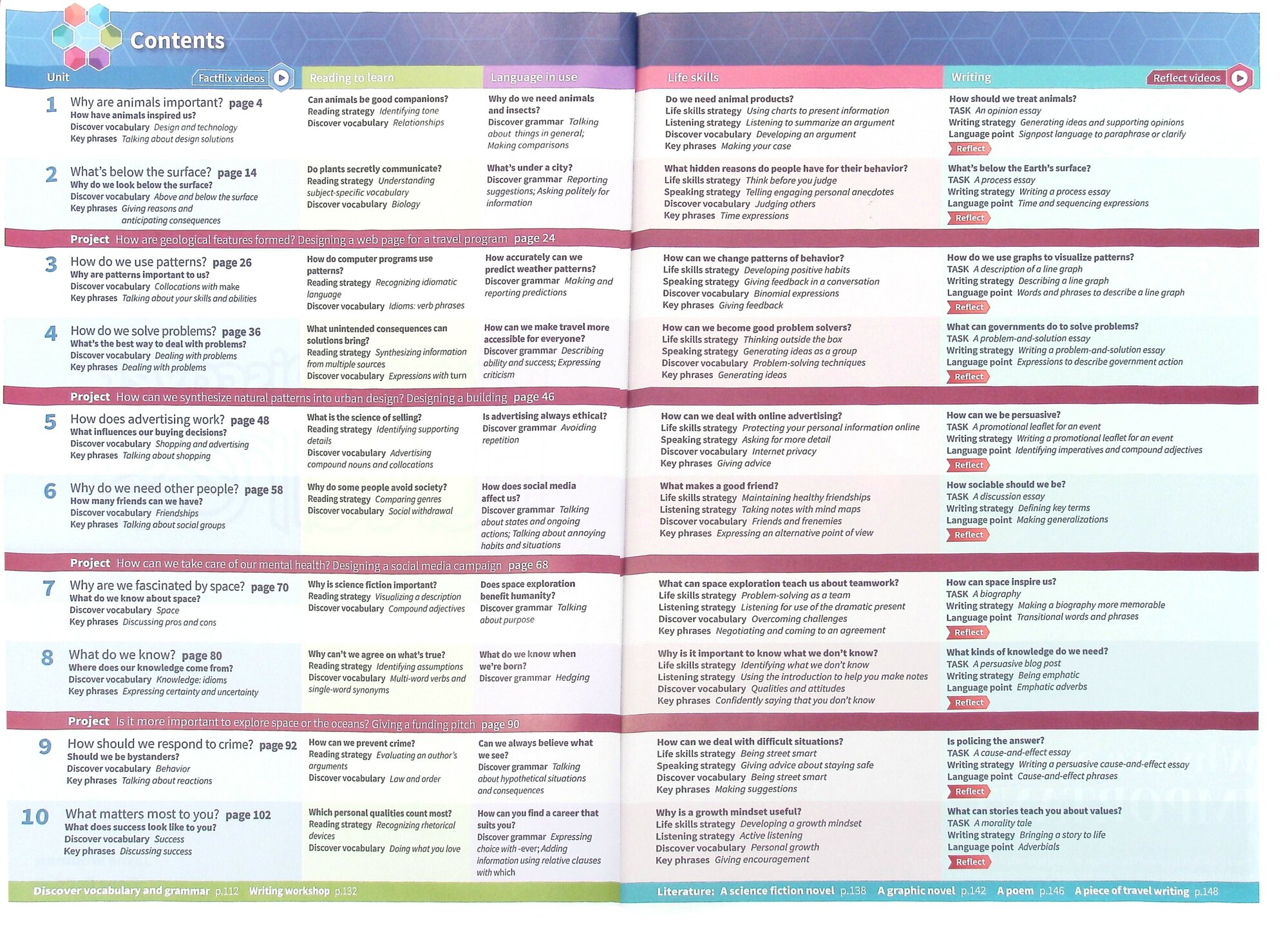 Each unit presents students with a unit question, and five lesson questions, encouraging students to examine the world more critically within an inquiry-based learning environment. The Student Book also includes Vocabulary and Grammar reference and practice, Project lessons, Literature lessons, and a Writing workshop.