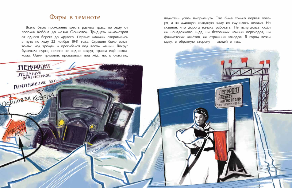 Есть среди дорог такая, что никогда не будет забыта, - Дорога жизни. В самые тяжёлые времена она соединяла два берега Ладожского озера и была единственной надеждой на спасение для жителей блокадного Ленинграда. От неё зависели жизнь, смерть и победа над врагом. В этой книге мы расскажем о Дороге жизни, о подвиге людей, которые её создали, о человеческой отваге и большой любви.