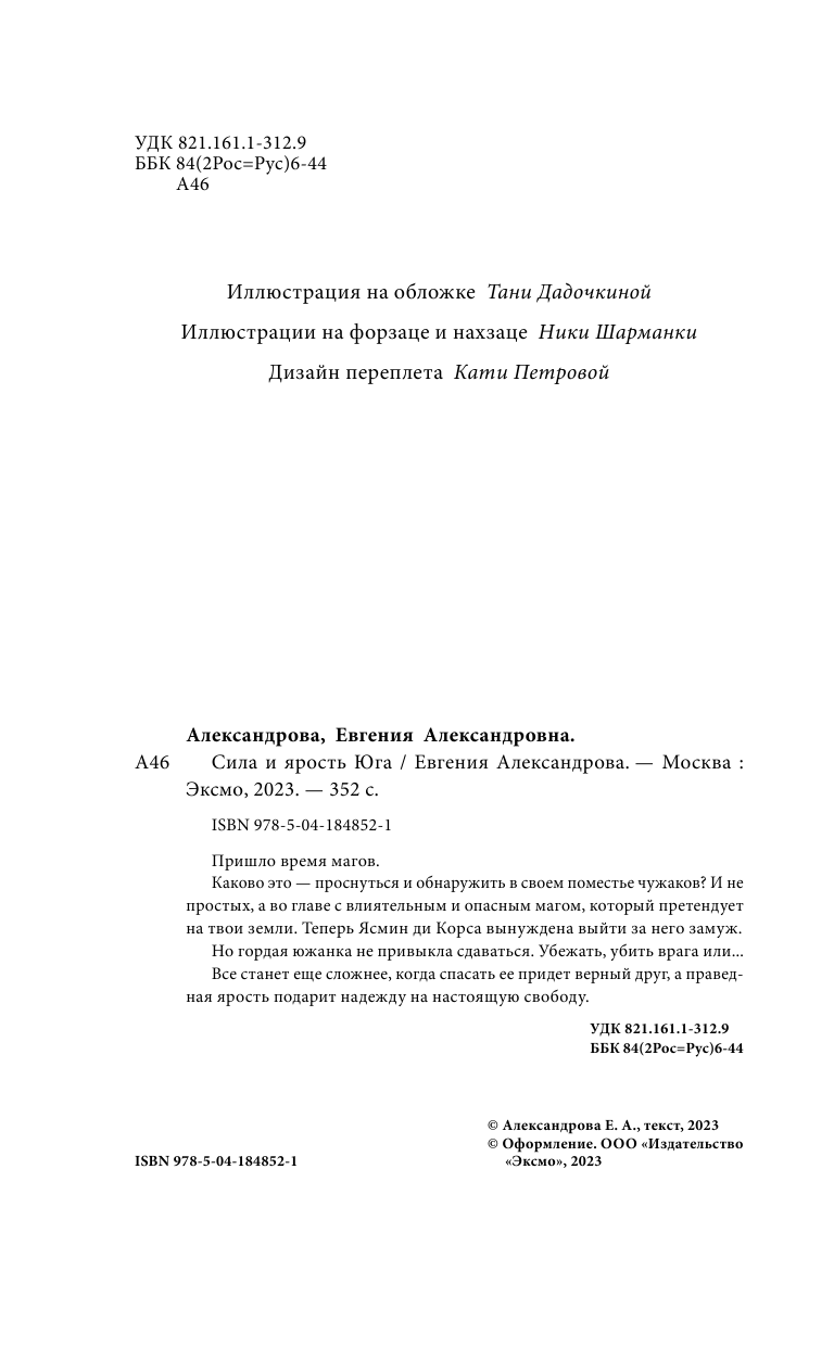 Книга: Сила и ярость Юга (Александрова Евгения Александровна); ООО "Издательство "Эксмо", 2023