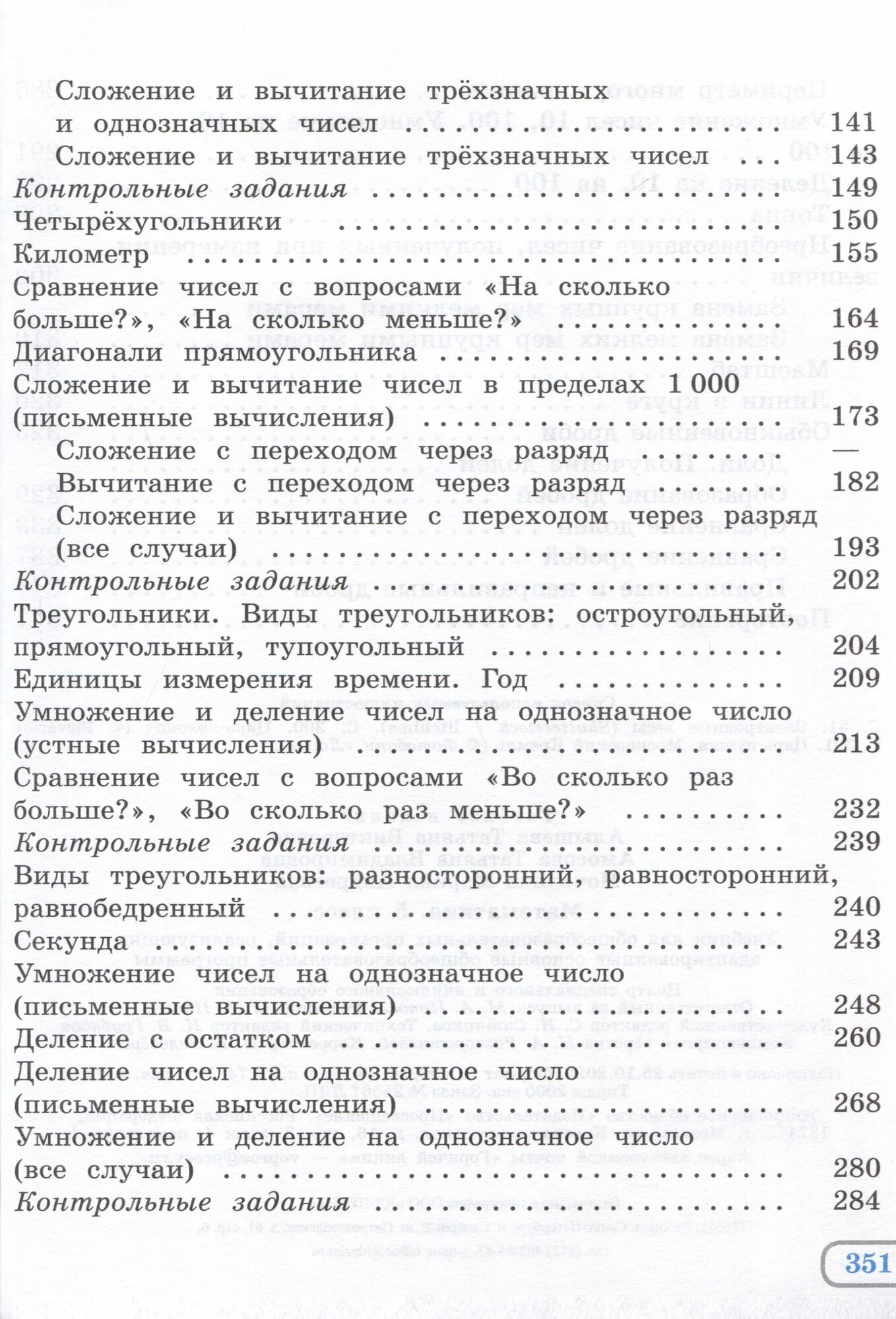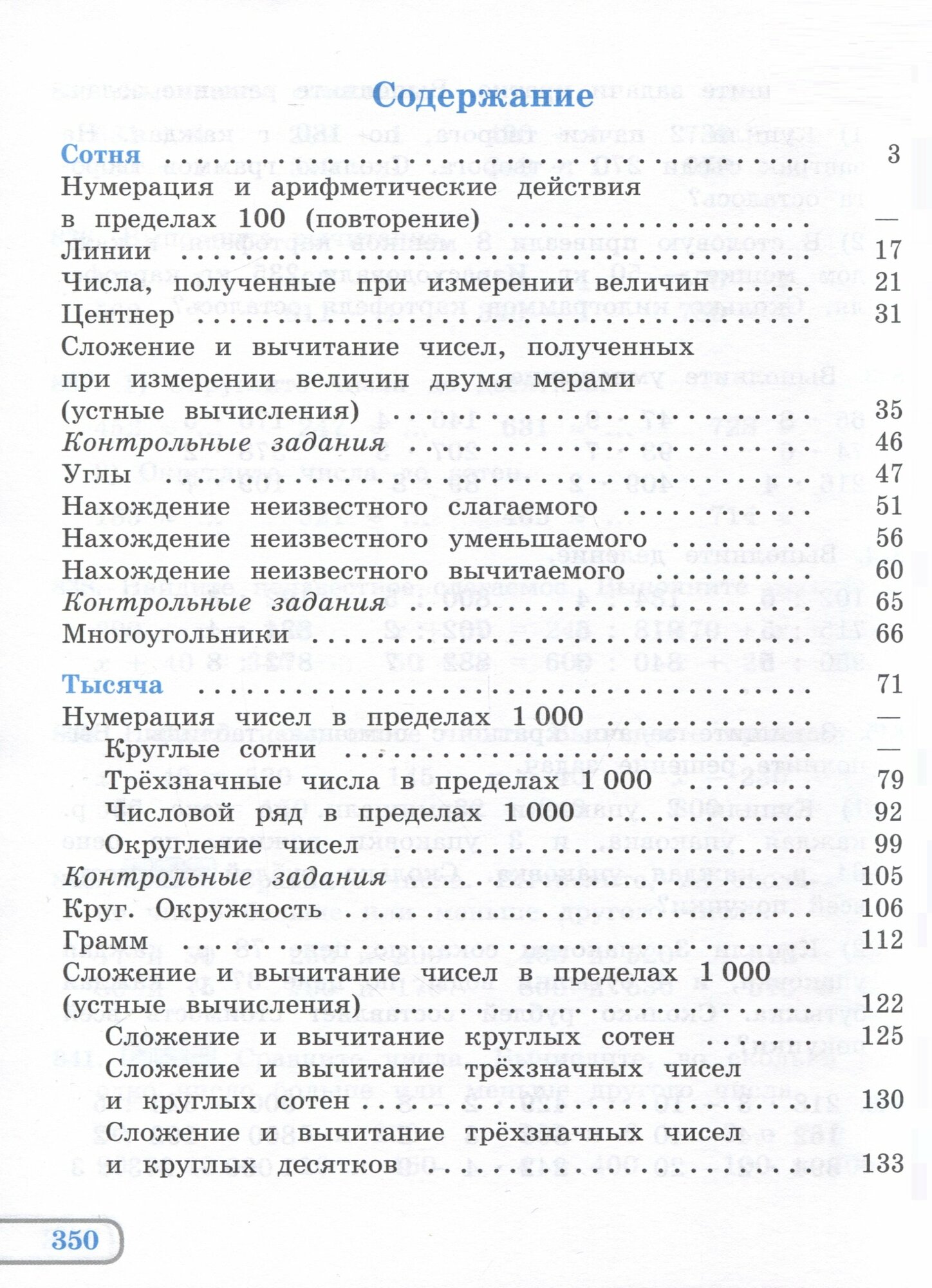 В учебнике повторяется нумерация и арифметические действия в пределах 100. Изучаются числа в пределах 1000 и арифметические действия с ними. Происходит знакомство обучающихся с такими понятиями, как "центнер", "грамм", "тонна", "километр", "секунда", "масштаб", "обыкновенная дробь".