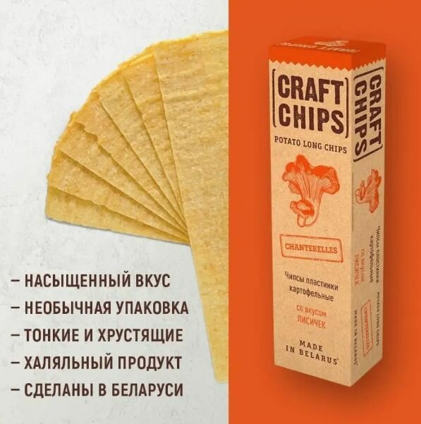 Наш век – век крафта. Чипсов это тоже касается, и мы об этом позаботились. Потребитель устал от унификации и начал обращать внимание на уникальность, качество и «душу» продуктов. Крафтовые чипсы-пластинки создавались для покупателей, ценящих вкус и эстетику продуктов, сделанных вручную и с особой теплотой.Наш крафт изготавливается по уникальной рецептуре, которая передает вкус продукта, сделанного вручную. Для упаковки чипсов мы используем неокрашенный крафтовый картон, чем дополнительно подчеркиваем натуральность и естественность продукта для покупателей.