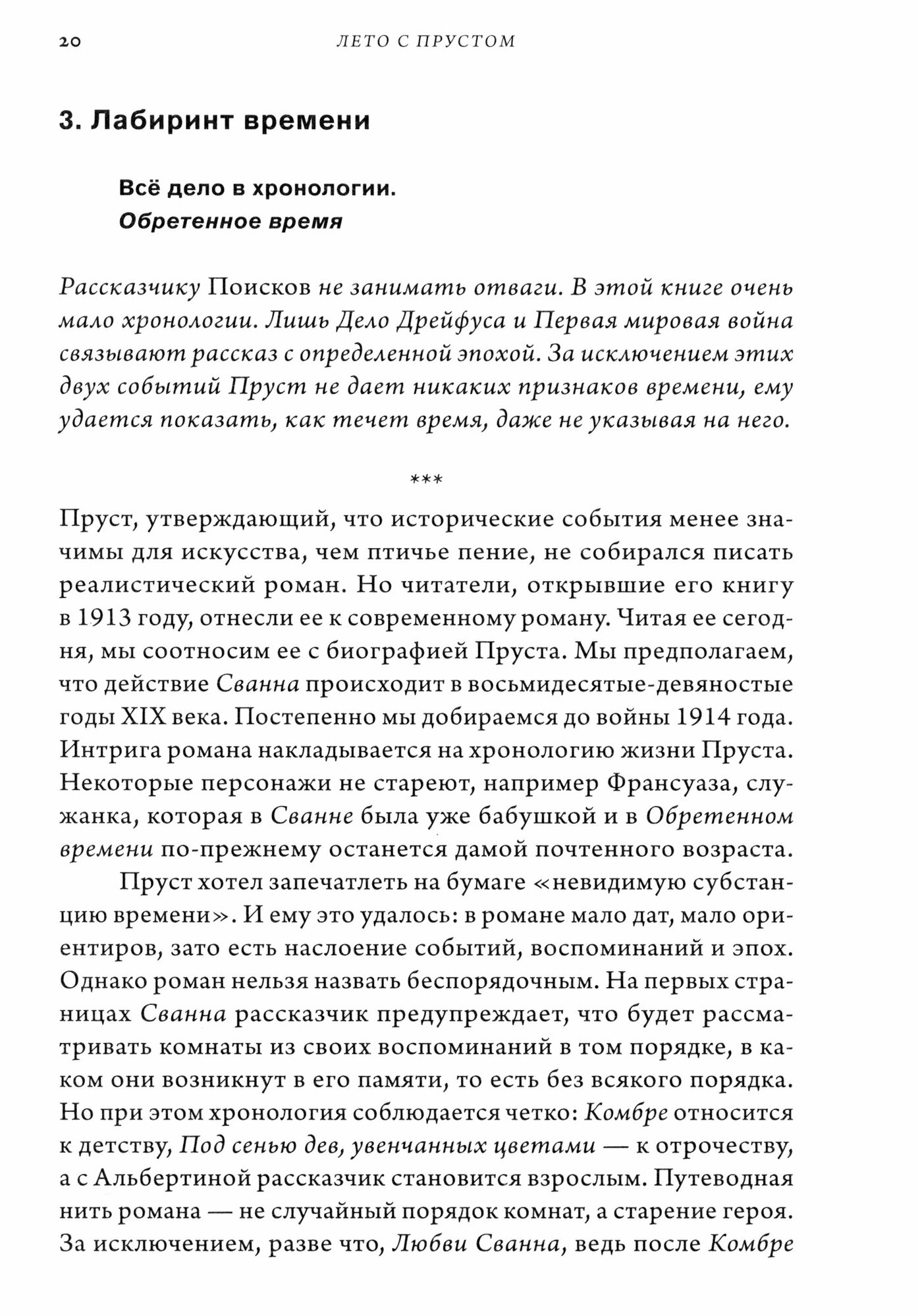В данной книге содержатся спойлеры на цикл \"В поисках утраченного времени\". Ещё в данном сборнике эссе есть много вставок из текстов данного цикла, порой на несколько страниц. Сборник очень достойный, узнала многие интересные факты из жизни Пруста. Отзывы современников Марселя об его творчестве, а также влияние Бальзака и других гениальных людей на творчество писателя.Разбираются особенности цикла, не только уже приевшиеся момент с мадленкой, но и другие приемы, которые использует автор в своих книгах этого цикла.
