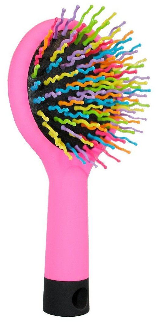 Компактная массажная щетка подходит для любого типа волос. Мягкие разноцветные зубчики с закругленными кончиками аккуратно массируют кожу головы, улучшая микроциркуляцию. Размер и зеркало делает щетку незаменимой в поездках. Изготовлена из акрилбутостирола. Щетка выполнена в ярко розовом цвете с черным основанием.
