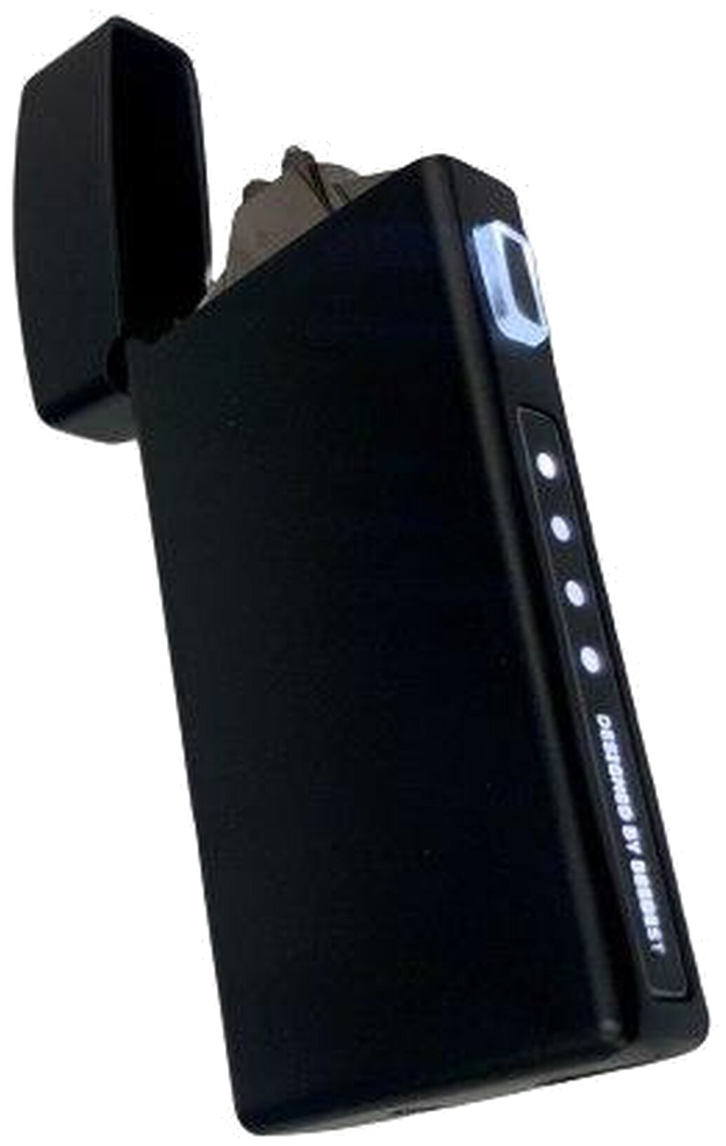 - электронная зажигалка со встроенным литий-ионным аккумулятором емкостью 230 мАч, полного заряда достаточного на неделю использования. Зарядка осуществляется через USB Type-C порт. Конструкция использует две электрические дуги для бесшумного и быстрого зажигания. Имеет индикаторы уровня заряда, интуитивное управление и защитную крышку. Заряжается полностью за 2 часа.