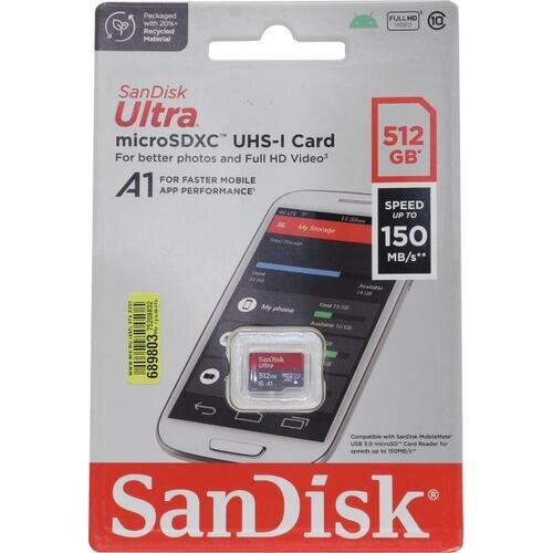 Карта SanDisk Ultra® microSD™ UHS-I дает вам настоящую свободу снимать и сохранять еще больше фотографий и видео, чем когда-либо, а также делиться ими. На карте SanDisk Ultra microSD емкостью 512 Гб хватит места, чтобы сохранить еще больше часов видео Full HD, а благодаря скорости передачи данных до 150 МБ/с вы сможете быстро переносить материалы. Эта карта, идеально подходящая для смартфонов и планшетов на базе Android™, загружает приложения быстрее за счет класса скорости A1, что делает использование смартфона приятнее и удобнее.Смотри также характеристики.